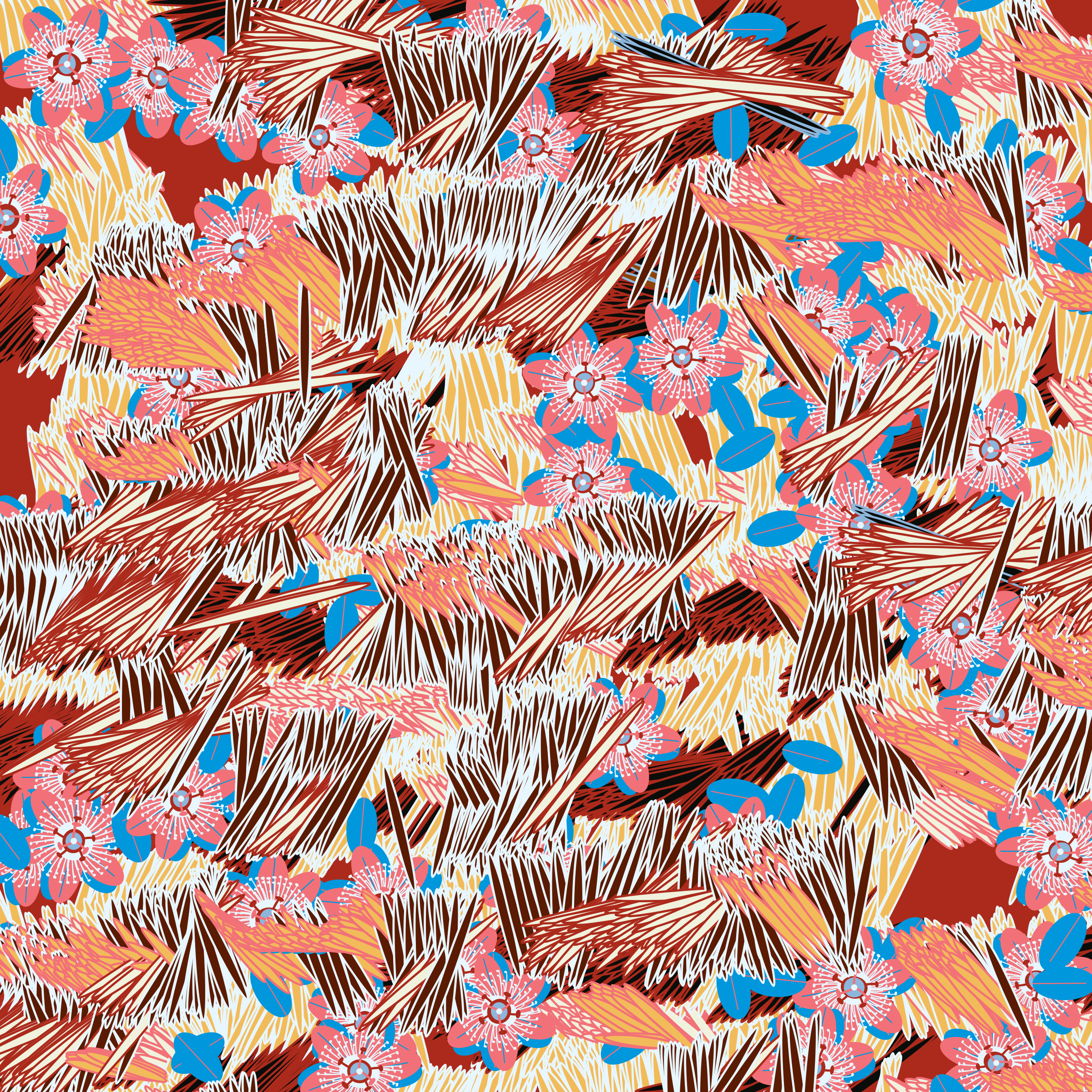 “Fragments of an infinite field” is a compositional system in which an idealized plant species is generated and arranged in a potentially infinite field of foliage. The main environmental parameter of the composition is the determination of a season of the year. The season determines the landscape’s colors and defines specific phenomena for each of them, such as rain in summer, snow in winter, petals falling in autumn, and pollen in spring. The flower has several possible variables, which can be macro aspects, affecting the entire population of the species, or micro, affecting each individual of the species differently. For example, the number of petals can be equal in all individuals or not. The number of filaments and other structures of the flower can undergo minor deviations, generating small mutations. The confusion between the figure (plant) and the background (earth, sky, other natural elements) is fascinating from a compositional point of view. The background colors are, most of the time, colors present in the figures, often breaking the boundary between them and, therefore, generating chromatic masses. In this project I also intend to research the following question: How to create parameters that resemble a living organism's growth? In this sense, the project approaches digital morphogenesis and the development of procedural organisms.