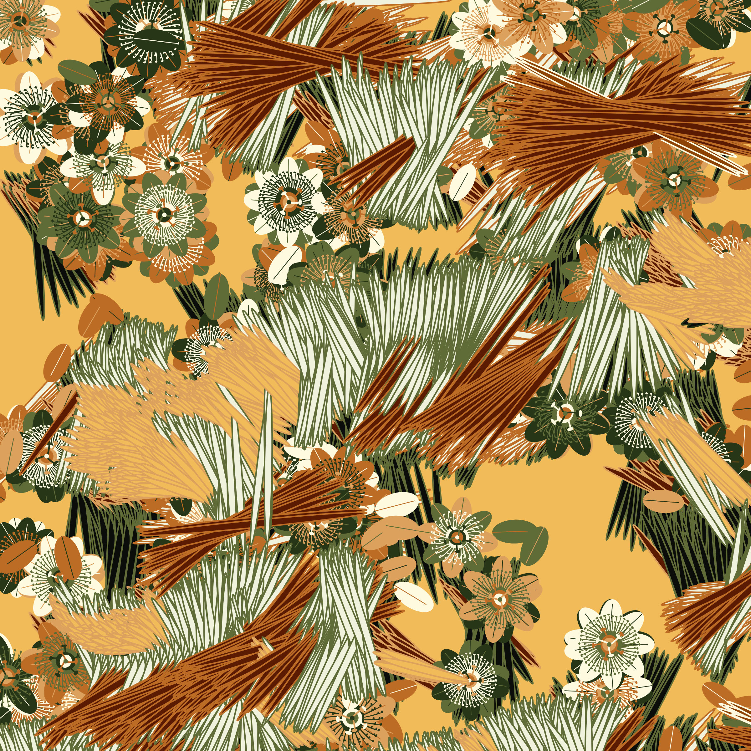 “Fragments of an infinite field” is a compositional system in which an idealized plant species is generated and arranged in a potentially infinite field of foliage. The main environmental parameter of the composition is the determination of a season of the year. The season determines the landscape’s colors and defines specific phenomena for each of them, such as rain in summer, snow in winter, petals falling in autumn, and pollen in spring. The flower has several possible variables, which can be macro aspects, affecting the entire population of the species, or micro, affecting each individual of the species differently. For example, the number of petals can be equal in all individuals or not. The number of filaments and other structures of the flower can undergo minor deviations, generating small mutations. The confusion between the figure (plant) and the background (earth, sky, other natural elements) is fascinating from a compositional point of view. The background colors are, most of the time, colors present in the figures, often breaking the boundary between them and, therefore, generating chromatic masses. In this project I also intend to research the following question: How to create parameters that resemble a living organism's growth? In this sense, the project approaches digital morphogenesis and the development of procedural organisms.