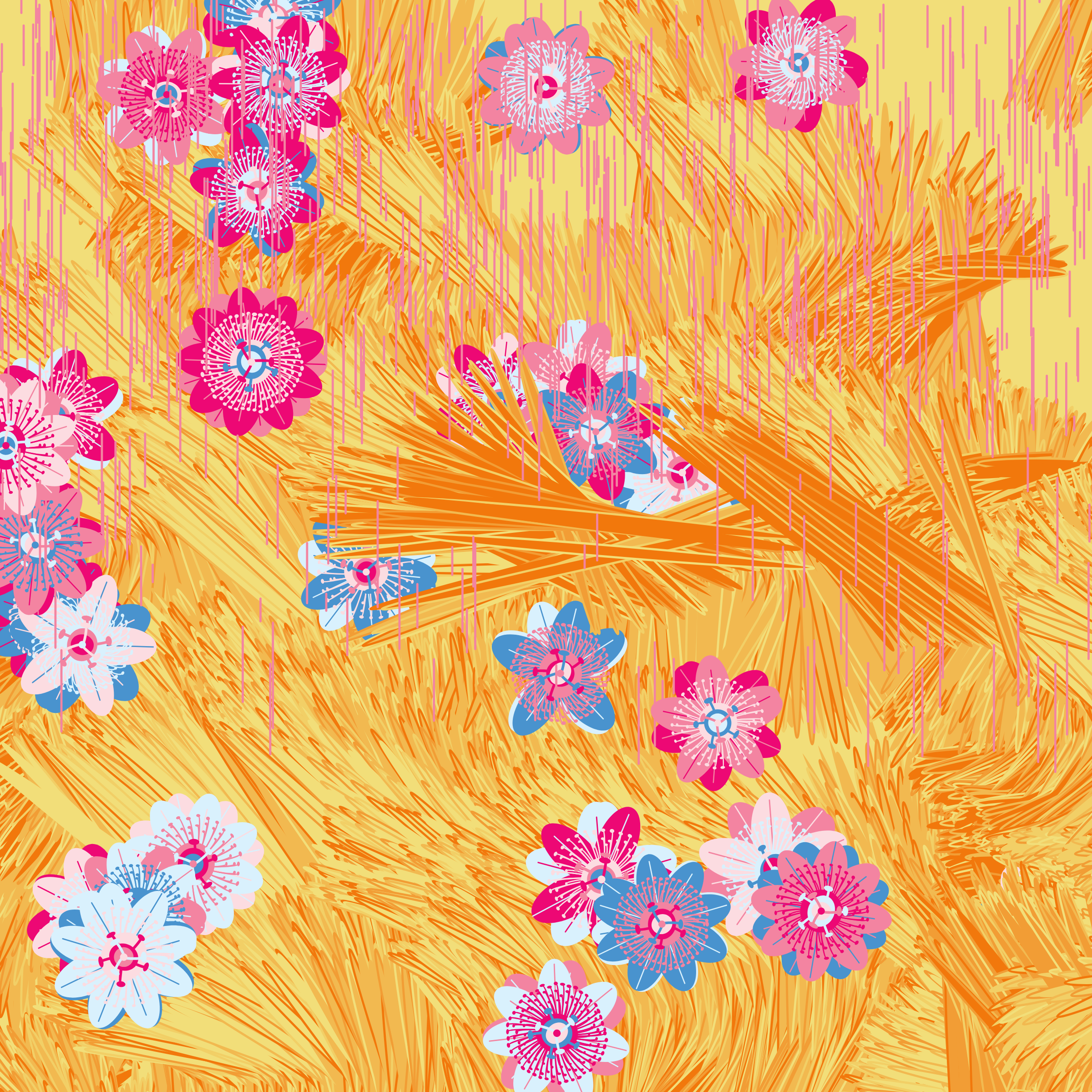 “Fragments of an infinite field” is a compositional system in which an idealized plant species is generated and arranged in a potentially infinite field of foliage. The main environmental parameter of the composition is the determination of a season of the year. The season determines the landscape’s colors and defines specific phenomena for each of them, such as rain in summer, snow in winter, petals falling in autumn, and pollen in spring. The flower has several possible variables, which can be macro aspects, affecting the entire population of the species, or micro, affecting each individual of the species differently. For example, the number of petals can be equal in all individuals or not. The number of filaments and other structures of the flower can undergo minor deviations, generating small mutations. The confusion between the figure (plant) and the background (earth, sky, other natural elements) is fascinating from a compositional point of view. The background colors are, most of the time, colors present in the figures, often breaking the boundary between them and, therefore, generating chromatic masses. In this project I also intend to research the following question: How to create parameters that resemble a living organism's growth? In this sense, the project approaches digital morphogenesis and the development of procedural organisms.