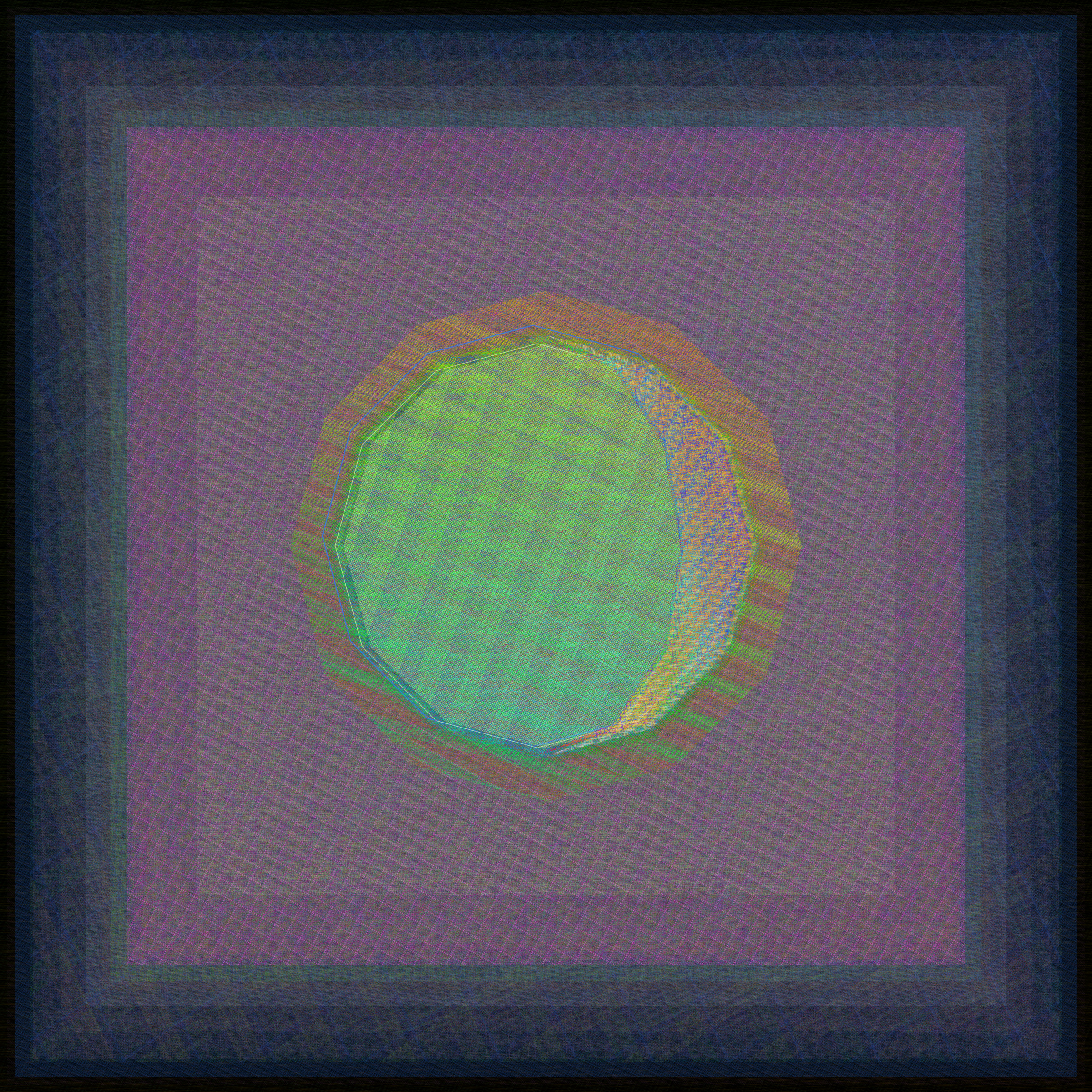 I created Gazers to be like a living artwork, to be lived with, and to not only have the artwork evolve over time but also the appreciation and experience of viewers. As I coded the work, I imagined it hanging on the wall of collectors, a fixture in their physical space. Collectors might spend a moment admiring their work, walk away for a couple hours, and then come back to be delighted, noticing the most subtle of shifts. Each layer of the work consists of pattern designs. With the passage of time, the thickness of the layered lines pulse and the direction a design moves will advance or rotate, changing our perception of color in the most subtle and optical of ways. Each day at midnight, each layer receives a new set of rules in terms of how to rise or shine over the next 24 hours. The result is color that rises and sets, echoing the change of light in our sky.