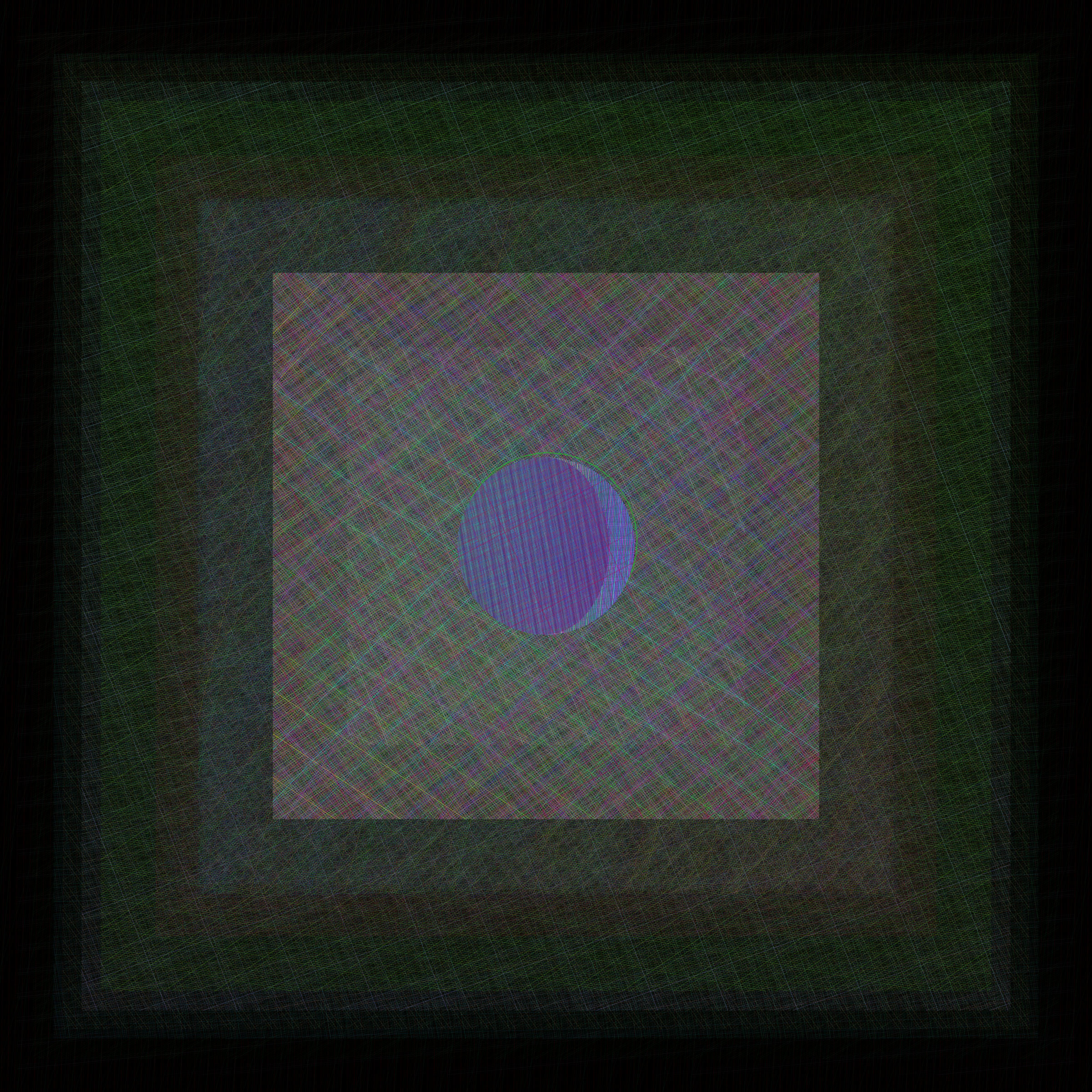 I created Gazers to be like a living artwork, to be lived with, and to not only have the artwork evolve over time but also the appreciation and experience of viewers. As I coded the work, I imagined it hanging on the wall of collectors, a fixture in their physical space. Collectors might spend a moment admiring their work, walk away for a couple hours, and then come back to be delighted, noticing the most subtle of shifts. Each layer of the work consists of pattern designs. With the passage of time, the thickness of the layered lines pulse and the direction a design moves will advance or rotate, changing our perception of color in the most subtle and optical of ways. Each day at midnight, each layer receives a new set of rules in terms of how to rise or shine over the next 24 hours. The result is color that rises and sets, echoing the change of light in our sky.