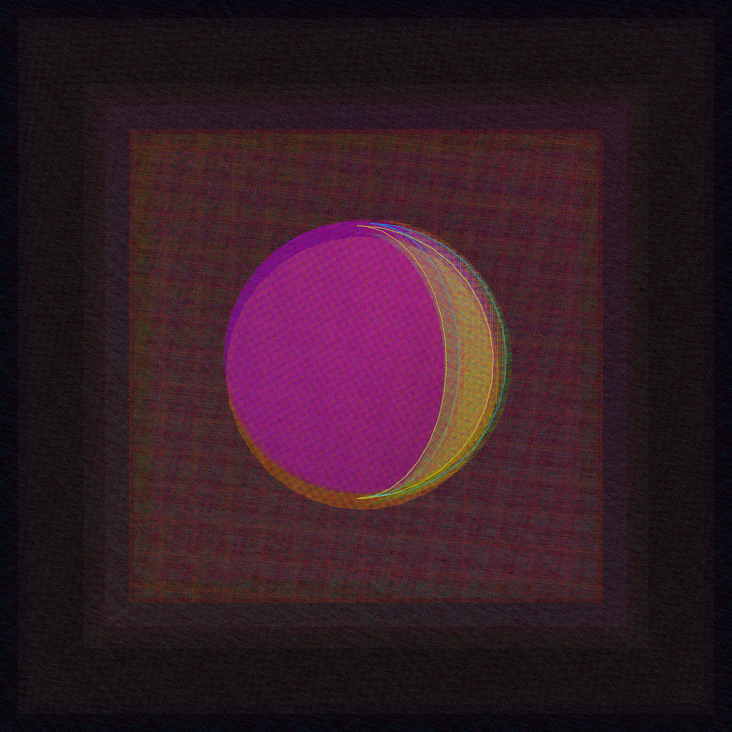 I created Gazers to be like a living artwork, to be lived with, and to not only have the artwork evolve over time but also the appreciation and experience of viewers. As I coded the work, I imagined it hanging on the wall of collectors, a fixture in their physical space. Collectors might spend a moment admiring their work, walk away for a couple hours, and then come back to be delighted, noticing the most subtle of shifts. Each layer of the work consists of pattern designs. With the passage of time, the thickness of the layered lines pulse and the direction a design moves will advance or rotate, changing our perception of color in the most subtle and optical of ways. Each day at midnight, each layer receives a new set of rules in terms of how to rise or shine over the next 24 hours. The result is color that rises and sets, echoing the change of light in our sky.