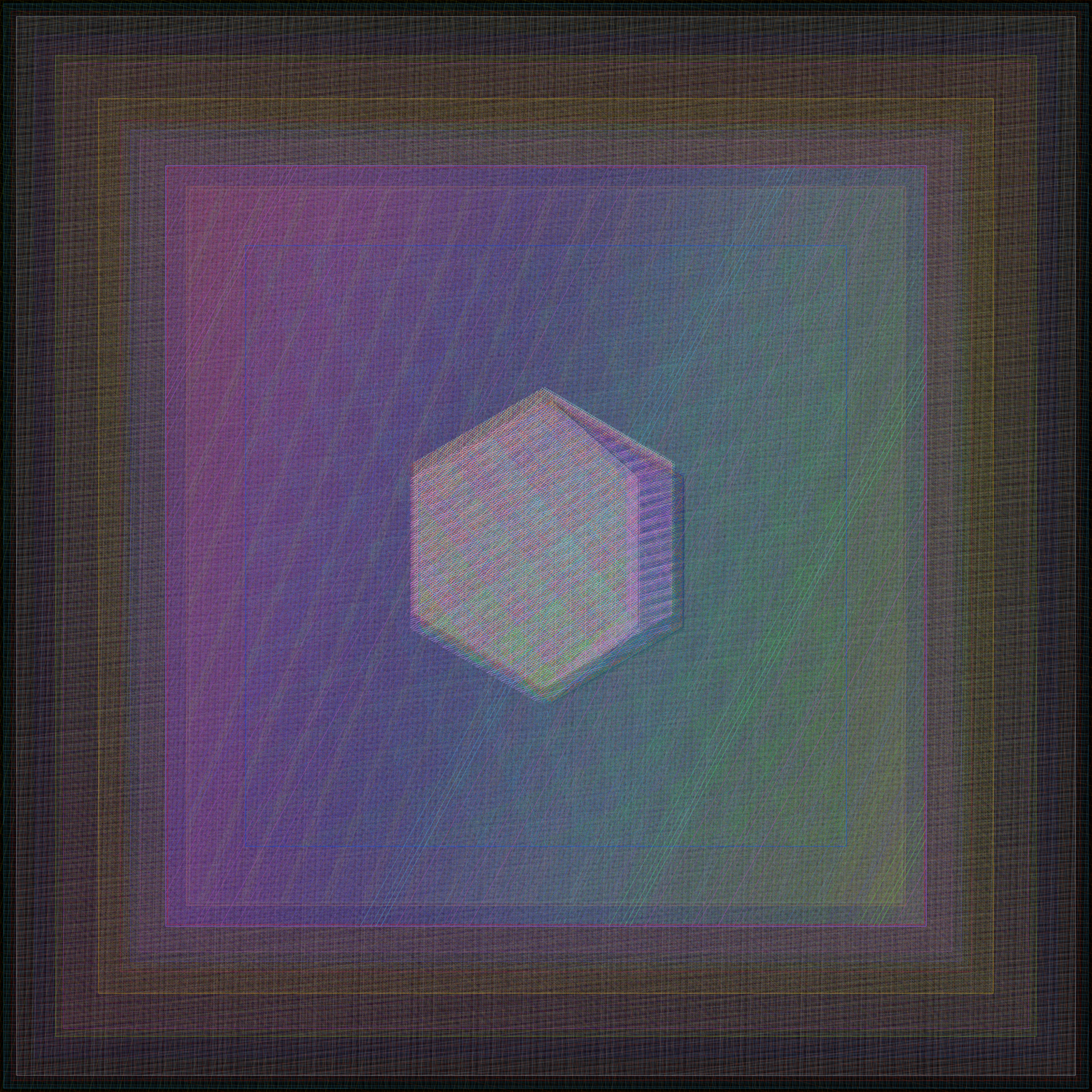 I created Gazers to be like a living artwork, to be lived with, and to not only have the artwork evolve over time but also the appreciation and experience of viewers. As I coded the work, I imagined it hanging on the wall of collectors, a fixture in their physical space. Collectors might spend a moment admiring their work, walk away for a couple hours, and then come back to be delighted, noticing the most subtle of shifts. Each layer of the work consists of pattern designs. With the passage of time, the thickness of the layered lines pulse and the direction a design moves will advance or rotate, changing our perception of color in the most subtle and optical of ways. Each day at midnight, each layer receives a new set of rules in terms of how to rise or shine over the next 24 hours. The result is color that rises and sets, echoing the change of light in our sky.