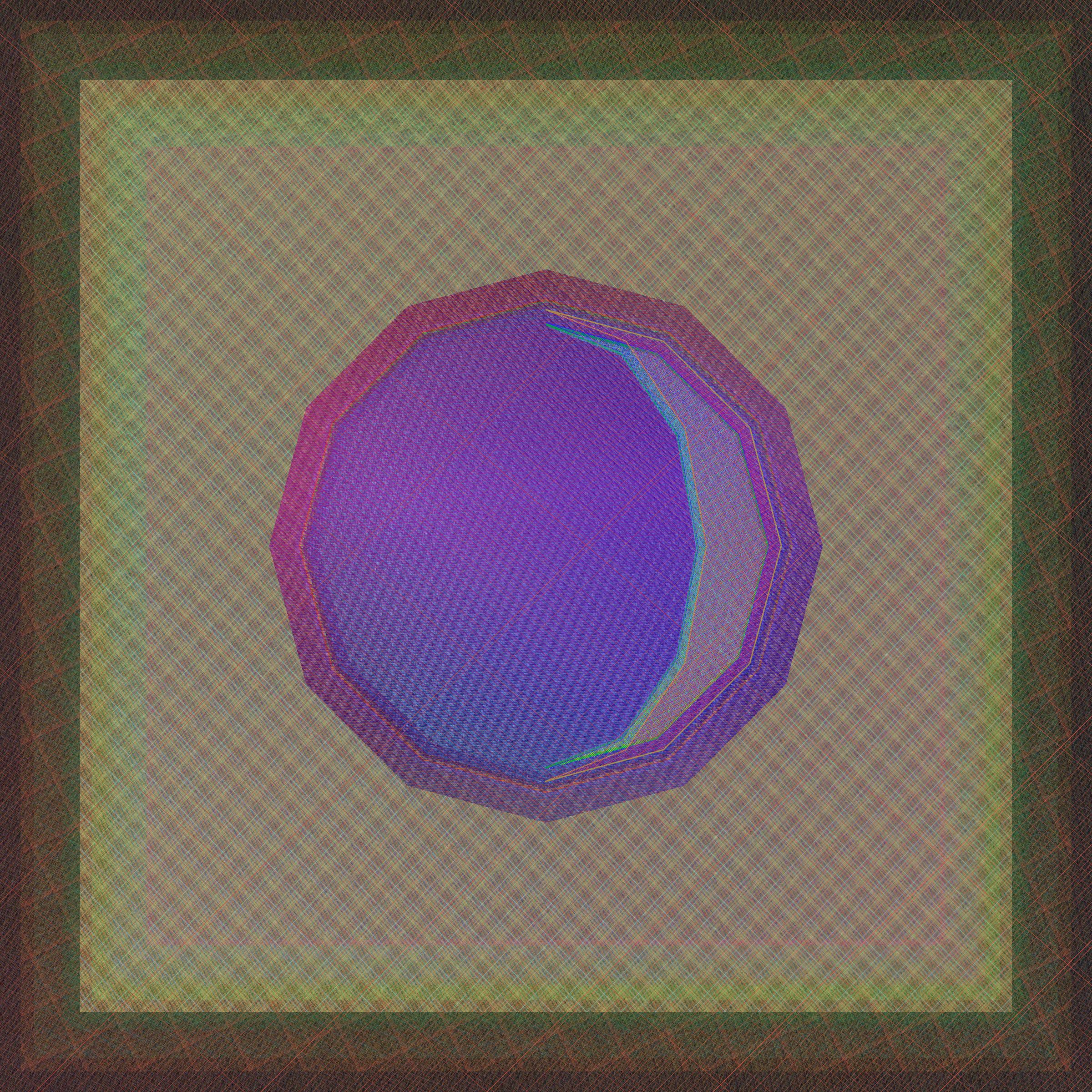 I created Gazers to be like a living artwork, to be lived with, and to not only have the artwork evolve over time but also the appreciation and experience of viewers. As I coded the work, I imagined it hanging on the wall of collectors, a fixture in their physical space. Collectors might spend a moment admiring their work, walk away for a couple hours, and then come back to be delighted, noticing the most subtle of shifts. Each layer of the work consists of pattern designs. With the passage of time, the thickness of the layered lines pulse and the direction a design moves will advance or rotate, changing our perception of color in the most subtle and optical of ways. Each day at midnight, each layer receives a new set of rules in terms of how to rise or shine over the next 24 hours. The result is color that rises and sets, echoing the change of light in our sky.