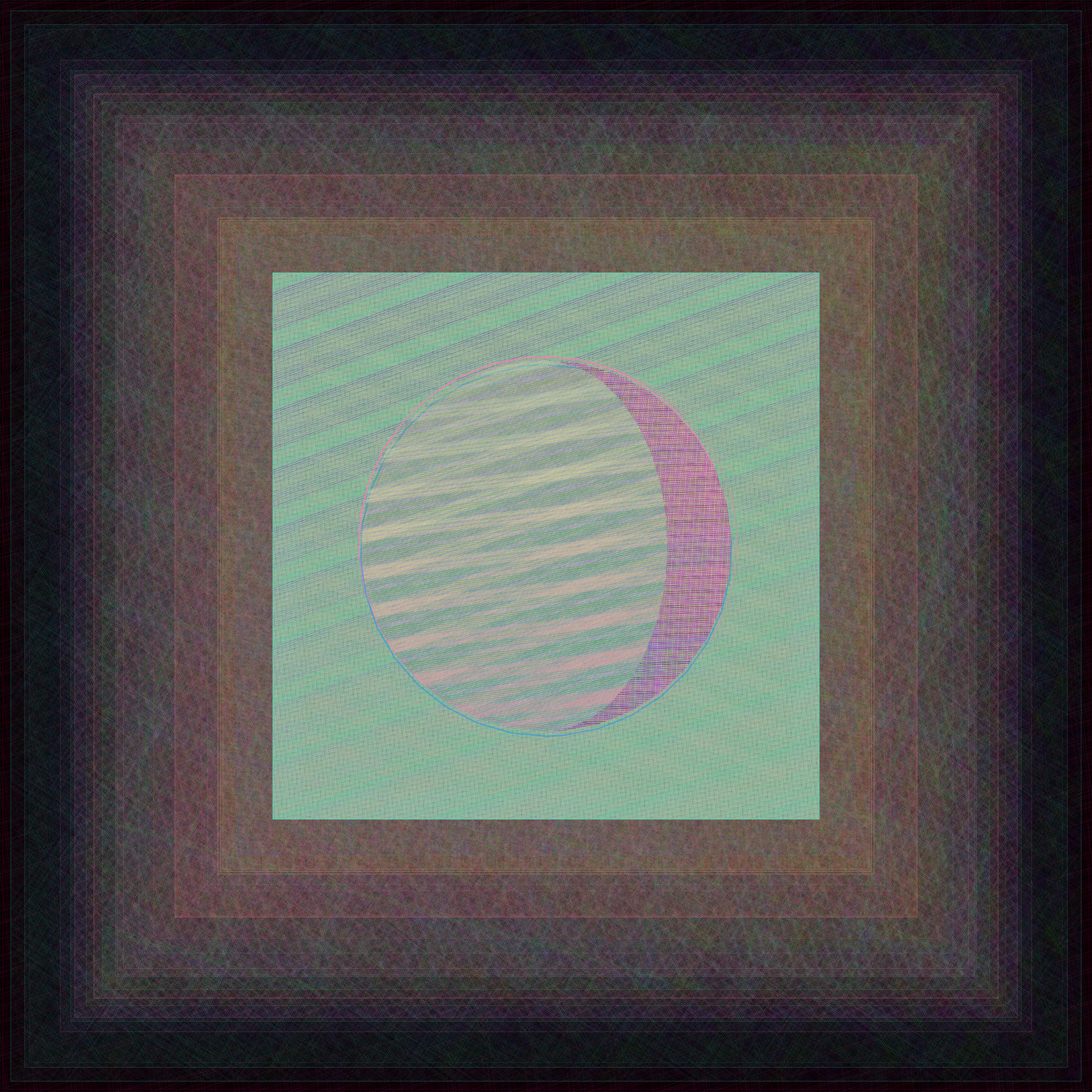 I created Gazers to be like a living artwork, to be lived with, and to not only have the artwork evolve over time but also the appreciation and experience of viewers. As I coded the work, I imagined it hanging on the wall of collectors, a fixture in their physical space. Collectors might spend a moment admiring their work, walk away for a couple hours, and then come back to be delighted, noticing the most subtle of shifts. Each layer of the work consists of pattern designs. With the passage of time, the thickness of the layered lines pulse and the direction a design moves will advance or rotate, changing our perception of color in the most subtle and optical of ways. Each day at midnight, each layer receives a new set of rules in terms of how to rise or shine over the next 24 hours. The result is color that rises and sets, echoing the change of light in our sky.