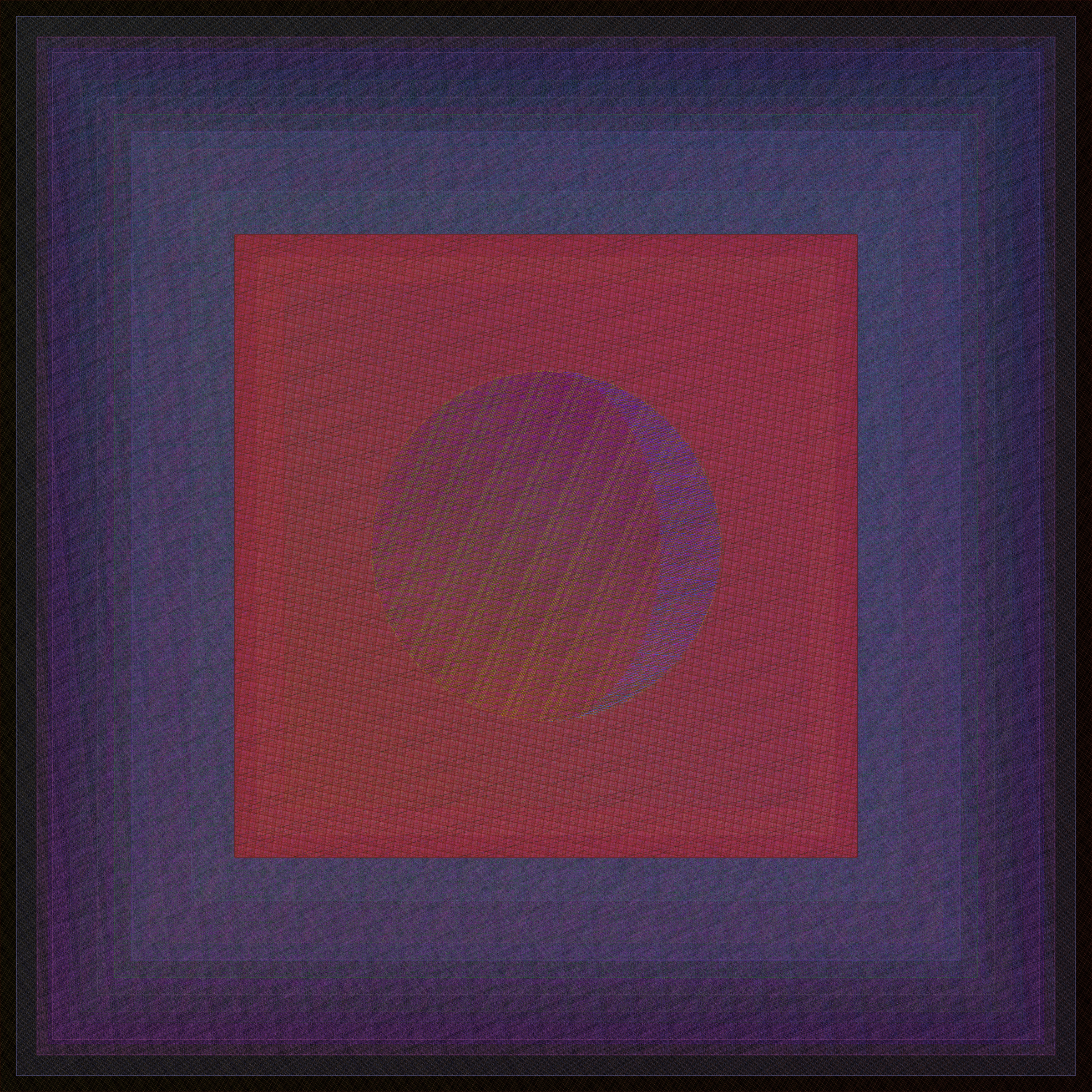 I created Gazers to be like a living artwork, to be lived with, and to not only have the artwork evolve over time but also the appreciation and experience of viewers. As I coded the work, I imagined it hanging on the wall of collectors, a fixture in their physical space. Collectors might spend a moment admiring their work, walk away for a couple hours, and then come back to be delighted, noticing the most subtle of shifts. Each layer of the work consists of pattern designs. With the passage of time, the thickness of the layered lines pulse and the direction a design moves will advance or rotate, changing our perception of color in the most subtle and optical of ways. Each day at midnight, each layer receives a new set of rules in terms of how to rise or shine over the next 24 hours. The result is color that rises and sets, echoing the change of light in our sky.