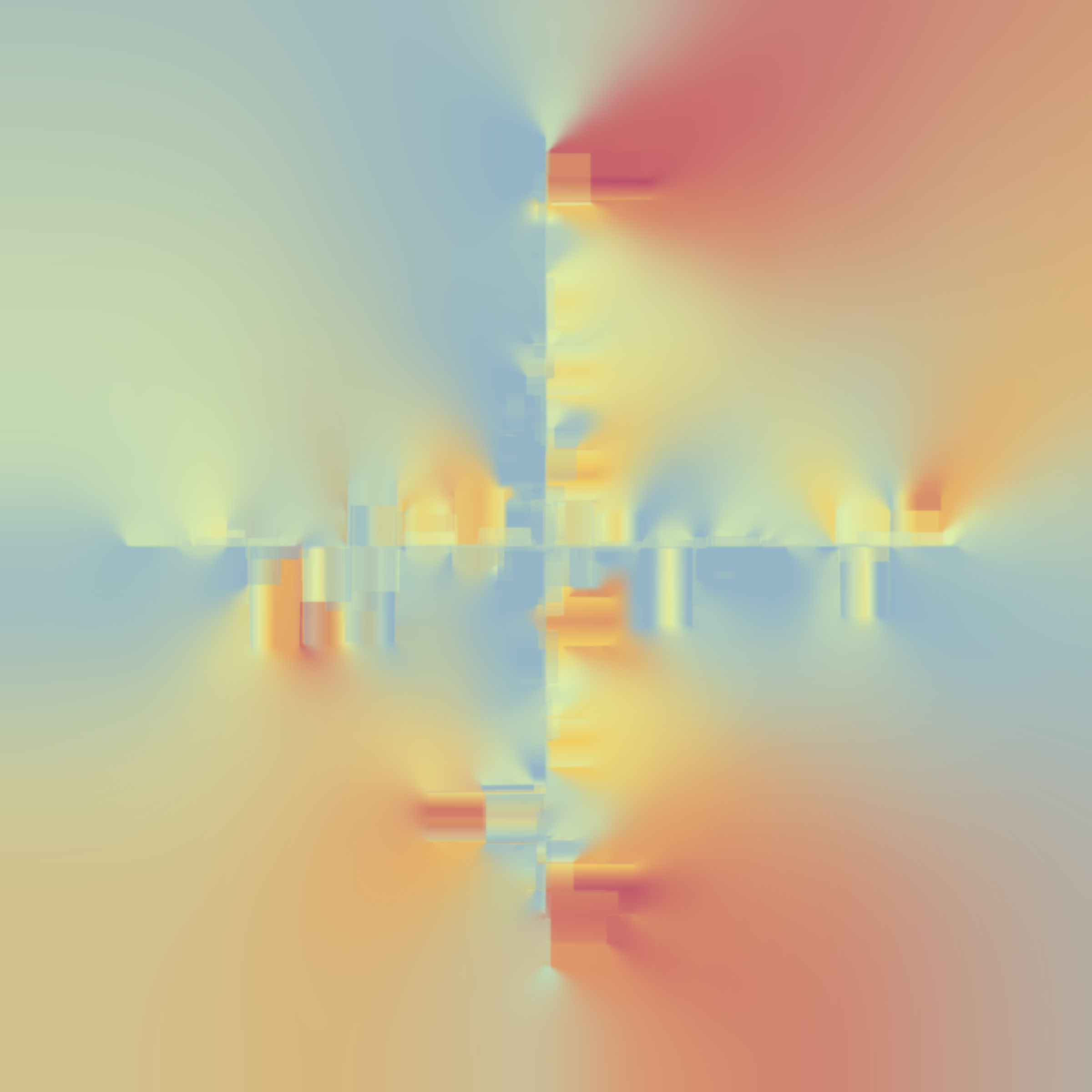 In this meditative exploration of color and form, iridescent structures emerge from transformations to a flat plane, each emanating an ethereal glow. [Shortcuts] spacebar: pause/resume, q: toggle quality, s: save screenshot. This artwork is responsive and adapts to any screen size. Note: requires a WebGL2-enabled browser.