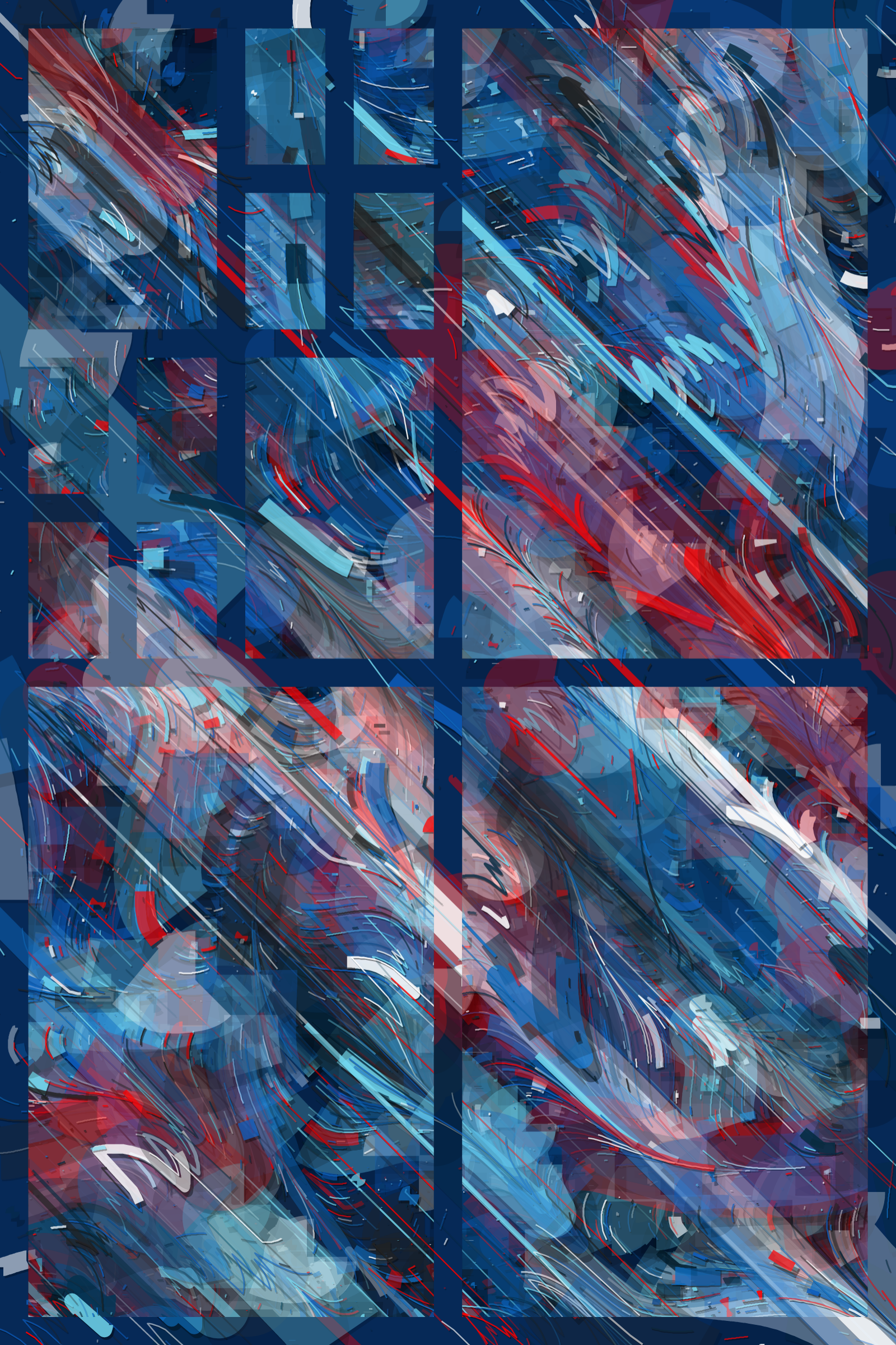 The Hōrō series proposes to explore representations of multiple flows through different abstract areas, while playing on a wide chromatic diversity rich with 55 palettes inspired by as many graffiti artists, urban calligraphers using color as a trace of their passages.