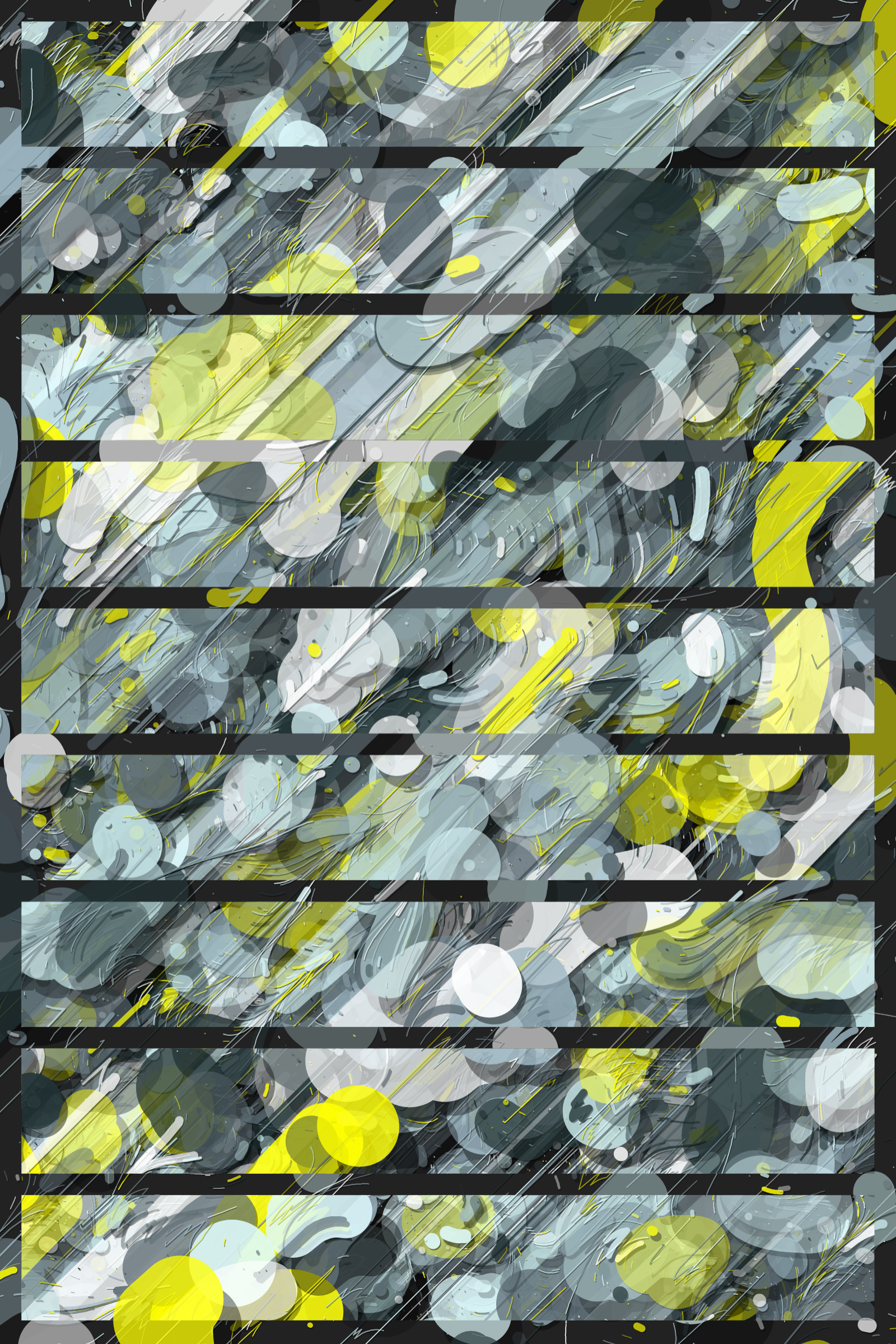 The Hōrō series proposes to explore representations of multiple flows through different abstract areas, while playing on a wide chromatic diversity rich with 55 palettes inspired by as many graffiti artists, urban calligraphers using color as a trace of their passages.