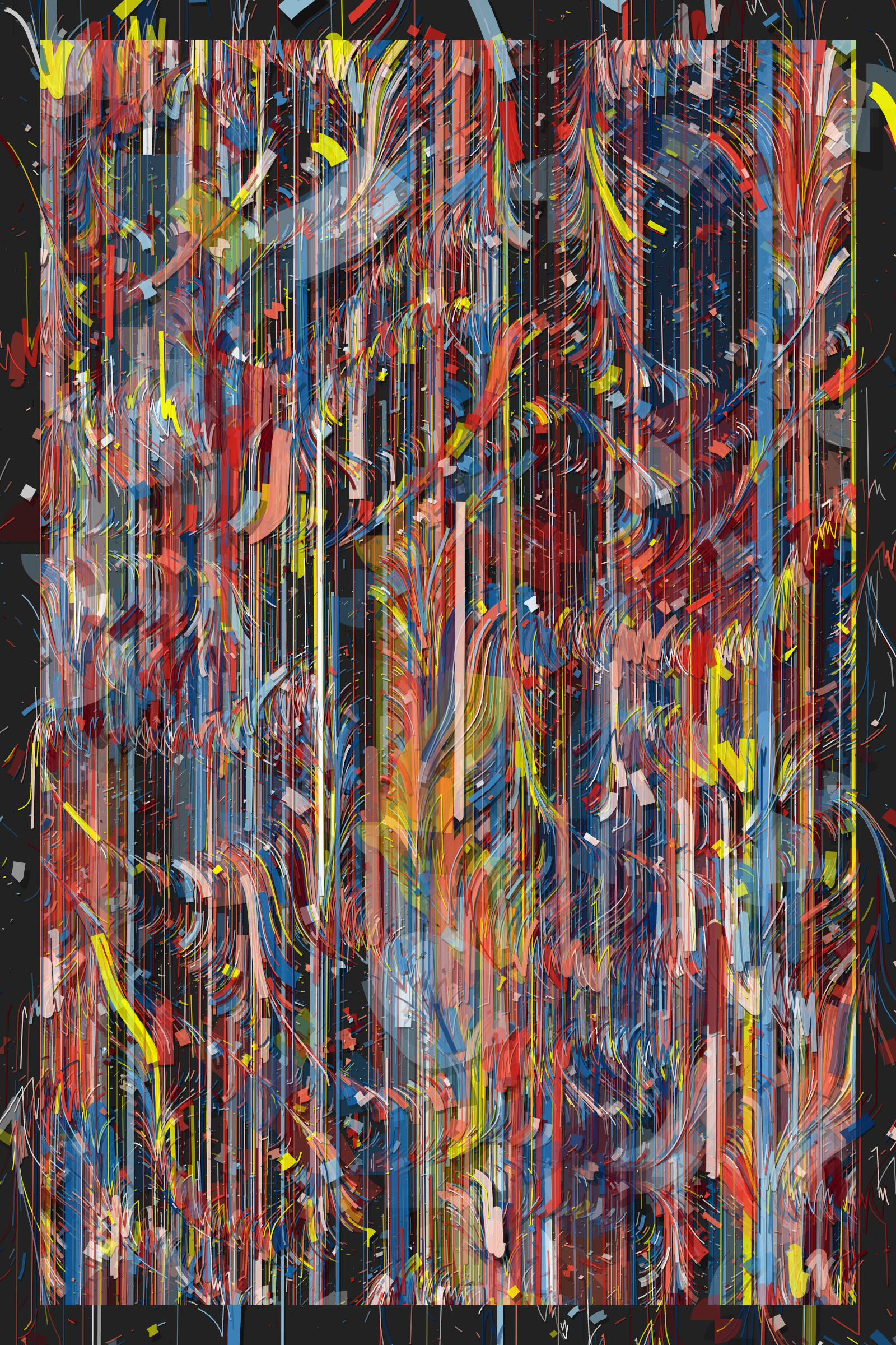 The Hōrō series proposes to explore representations of multiple flows through different abstract areas, while playing on a wide chromatic diversity rich with 55 palettes inspired by as many graffiti artists, urban calligraphers using color as a trace of their passages.