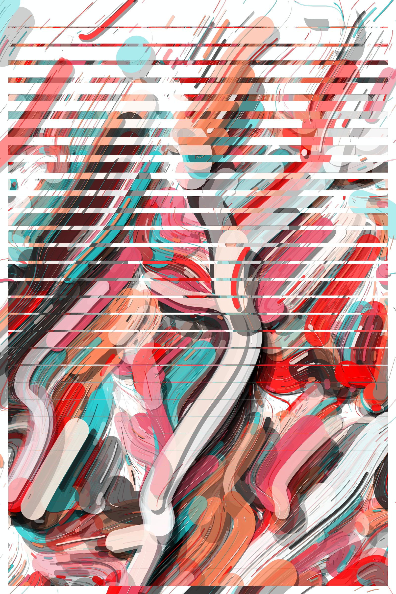 The Hōrō series proposes to explore representations of multiple flows through different abstract areas, while playing on a wide chromatic diversity rich with 55 palettes inspired by as many graffiti artists, urban calligraphers using color as a trace of their passages.