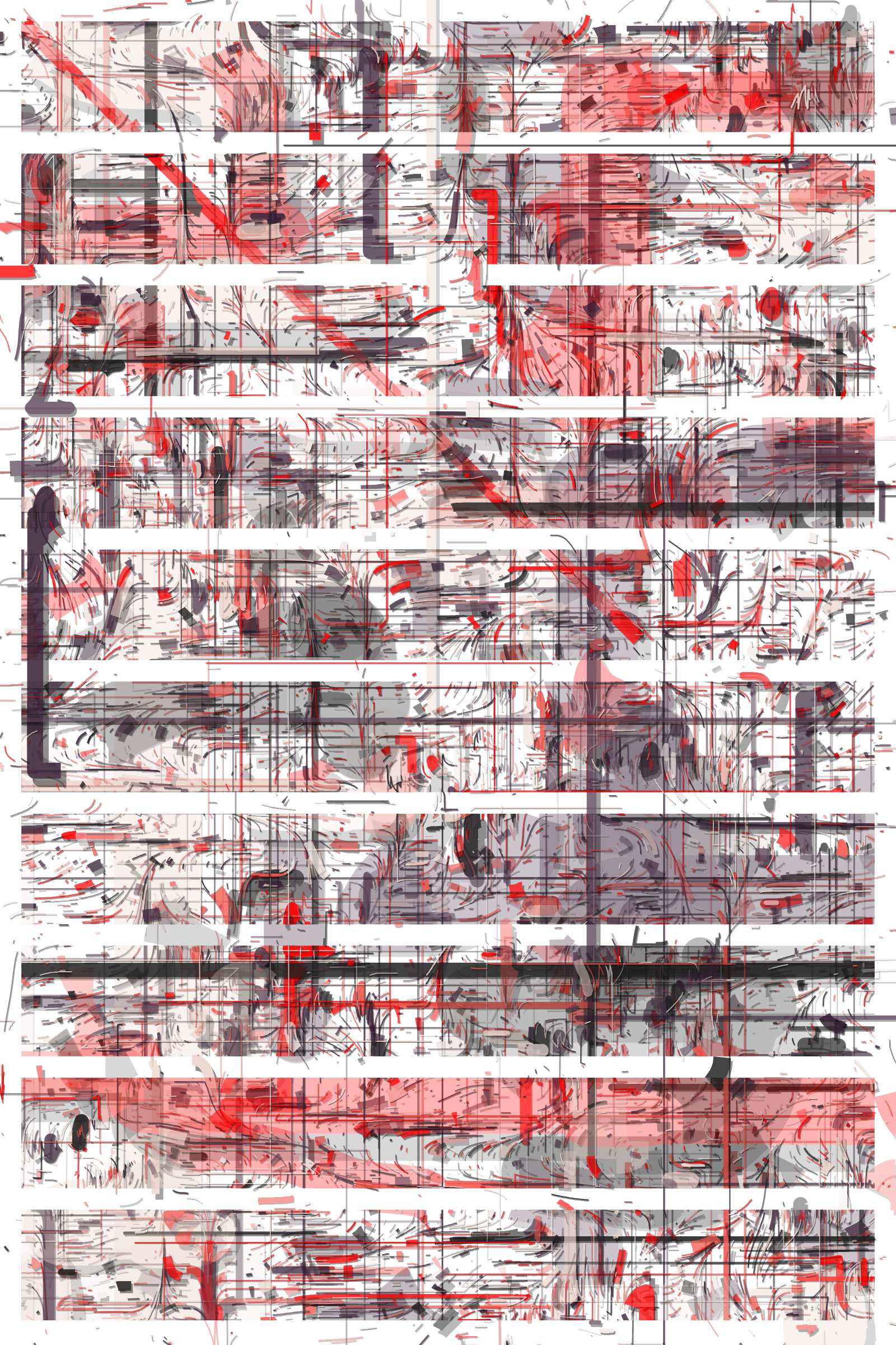 The Hōrō series proposes to explore representations of multiple flows through different abstract areas, while playing on a wide chromatic diversity rich with 55 palettes inspired by as many graffiti artists, urban calligraphers using color as a trace of their passages.