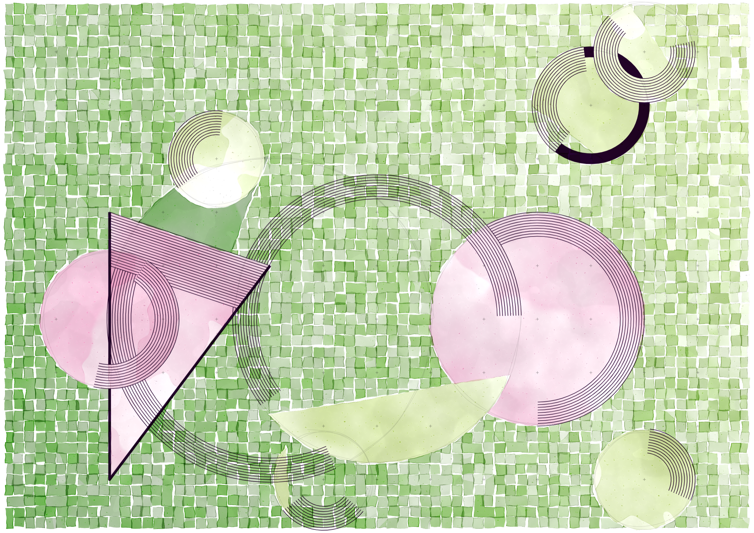 *Inprecision* is exploring the tension between the precision offered by computers and the imperfections inherent in classic art production approaches. The generative system is based on circles and triangles, perfectly aligned with each other and placed on a grid, but rendered with a technique inspired by the look of water color giving a high degree of imperfection in the rendered output. The precision of the underlying system is then again accentuated by a layer of hyper precise line drawings, outlining the used geometries and providing a scaffold for the underlying colors.