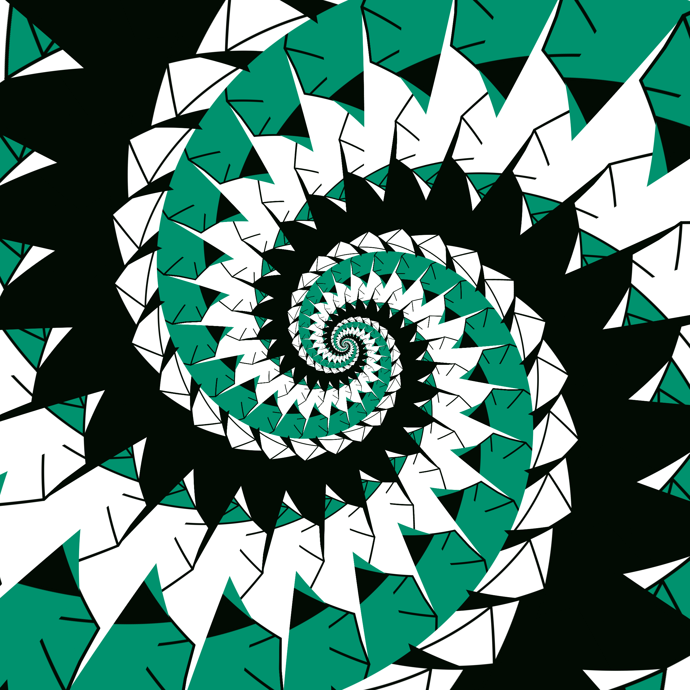 Escher-style tiling of a plane, gone wrong. Each image spins hash-driven colors, shapes, and symmetries into infinity. Fly through the spiral as it morphs between beauty and madness. Keys: F = Fly through/back, D = Distort on/off, Esc = Stop, S = Save image.