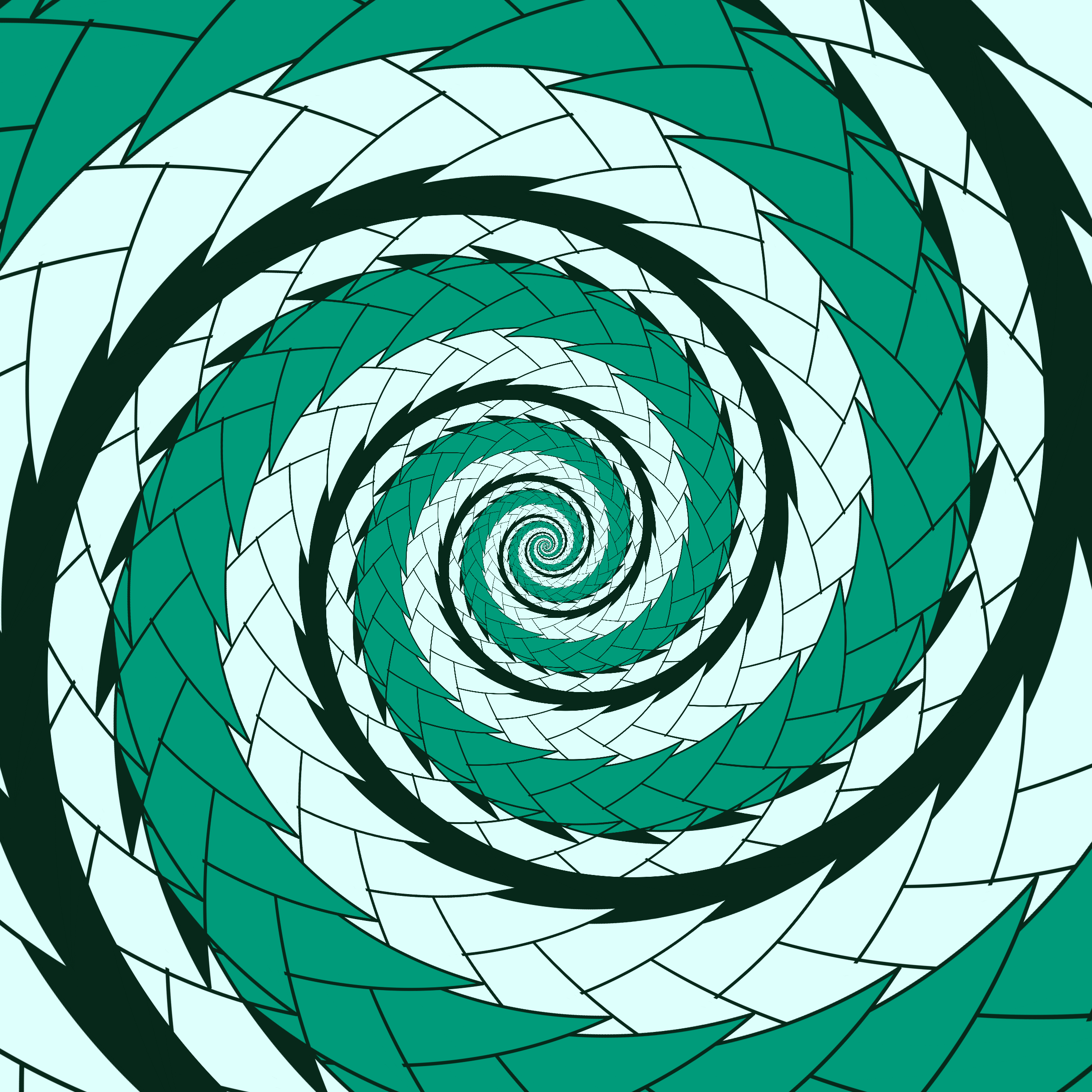 Escher-style tiling of a plane, gone wrong. Each image spins hash-driven colors, shapes, and symmetries into infinity. Fly through the spiral as it morphs between beauty and madness. Keys: F = Fly through/back, D = Distort on/off, Esc = Stop, S = Save image.