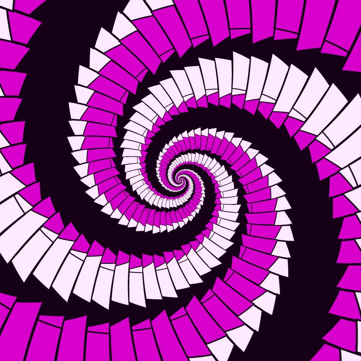 Escher-style tiling of a plane, gone wrong. Each image spins hash-driven colors, shapes, and symmetries into infinity. Fly through the spiral as it morphs between beauty and madness. Keys: F = Fly through/back, D = Distort on/off, Esc = Stop, S = Save image.
