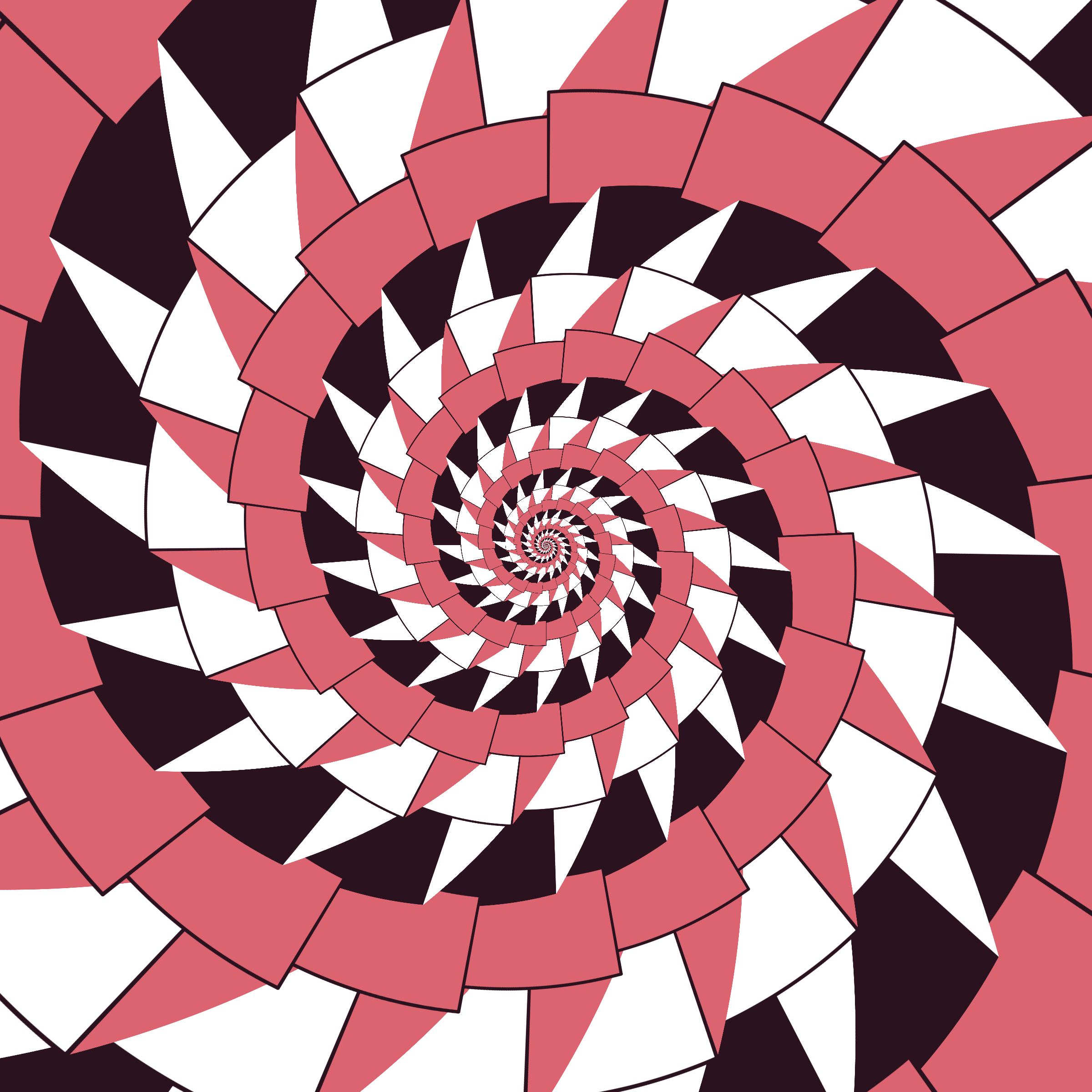 Escher-style tiling of a plane, gone wrong. Each image spins hash-driven colors, shapes, and symmetries into infinity. Fly through the spiral as it morphs between beauty and madness. Keys: F = Fly through/back, D = Distort on/off, Esc = Stop, S = Save image.