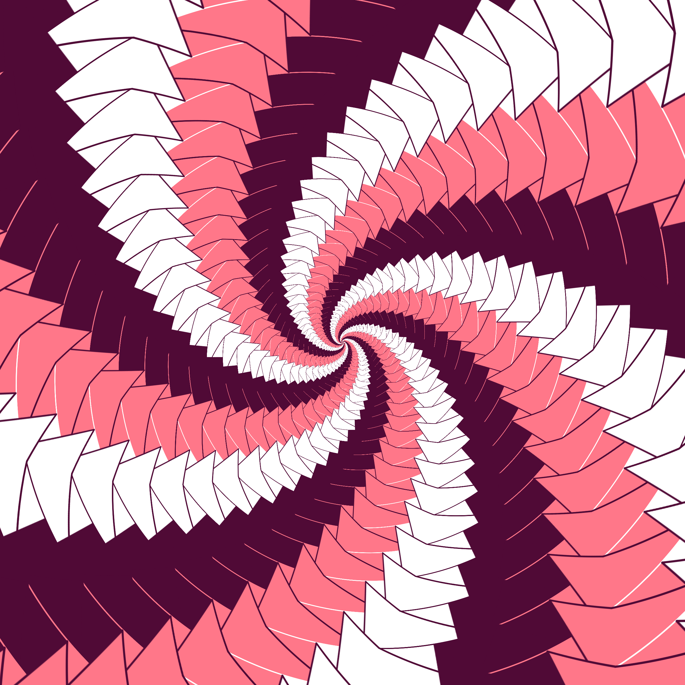 Escher-style tiling of a plane, gone wrong. Each image spins hash-driven colors, shapes, and symmetries into infinity. Fly through the spiral as it morphs between beauty and madness. Keys: F = Fly through/back, D = Distort on/off, Esc = Stop, S = Save image.