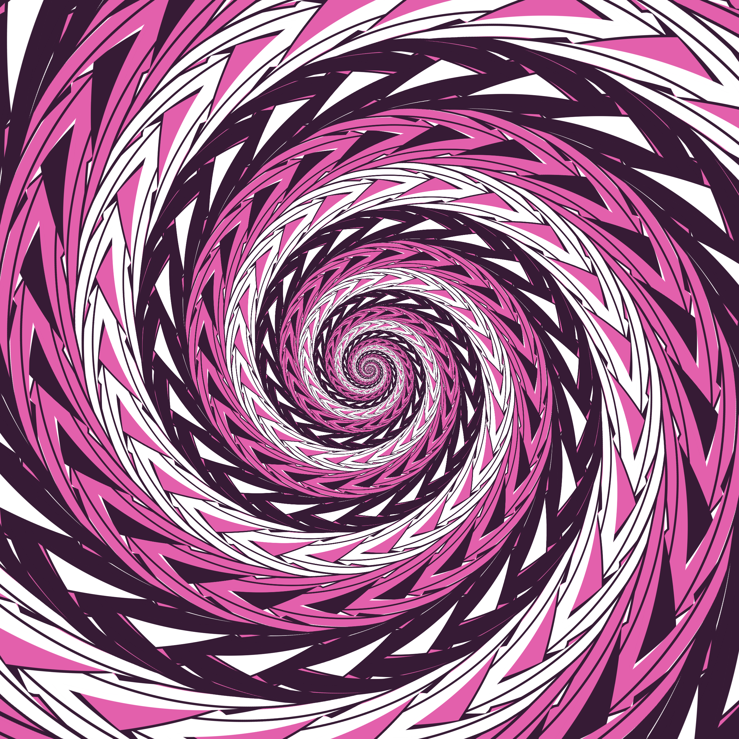 Escher-style tiling of a plane, gone wrong. Each image spins hash-driven colors, shapes, and symmetries into infinity. Fly through the spiral as it morphs between beauty and madness. Keys: F = Fly through/back, D = Distort on/off, Esc = Stop, S = Save image.