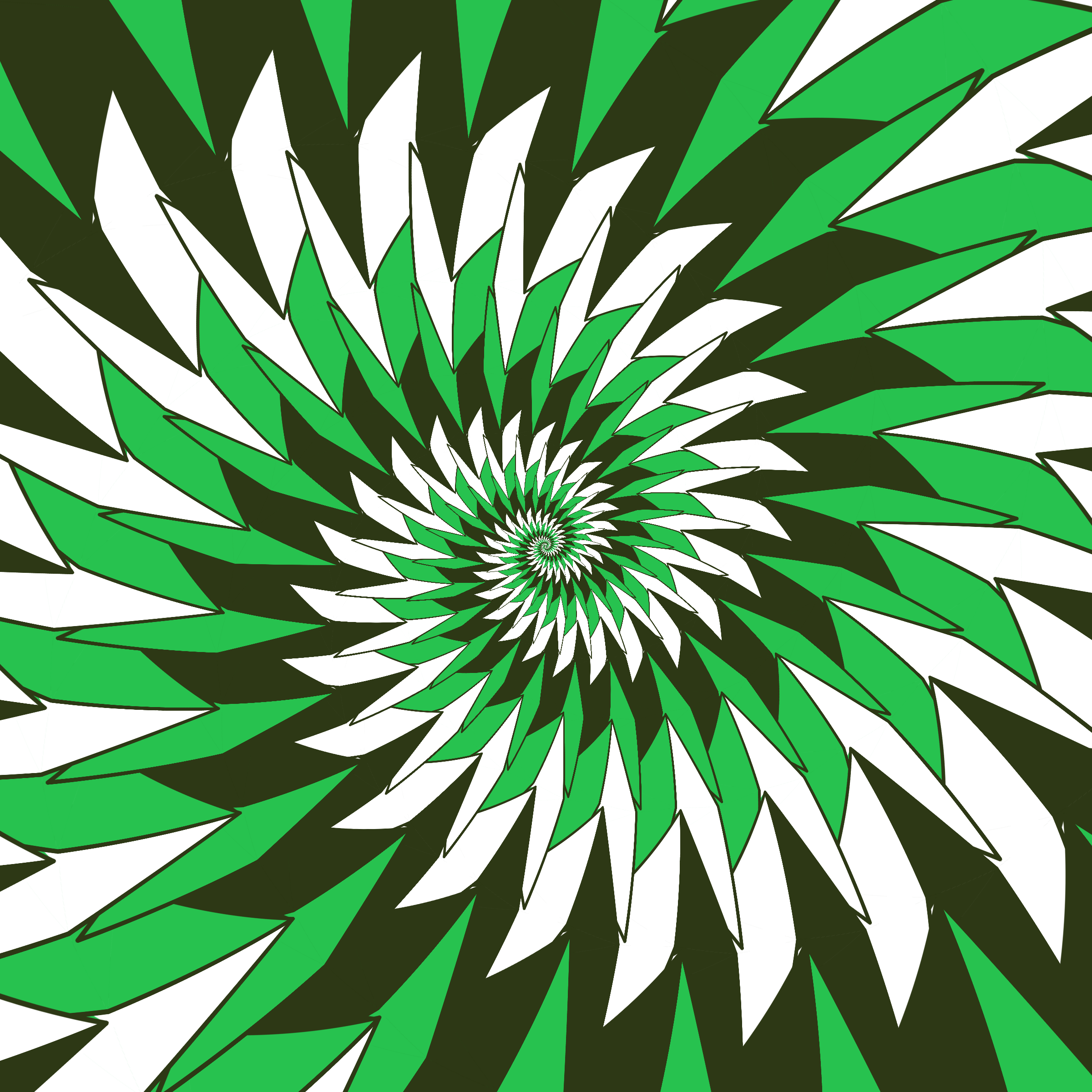 Escher-style tiling of a plane, gone wrong. Each image spins hash-driven colors, shapes, and symmetries into infinity. Fly through the spiral as it morphs between beauty and madness. Keys: F = Fly through/back, D = Distort on/off, Esc = Stop, S = Save image.