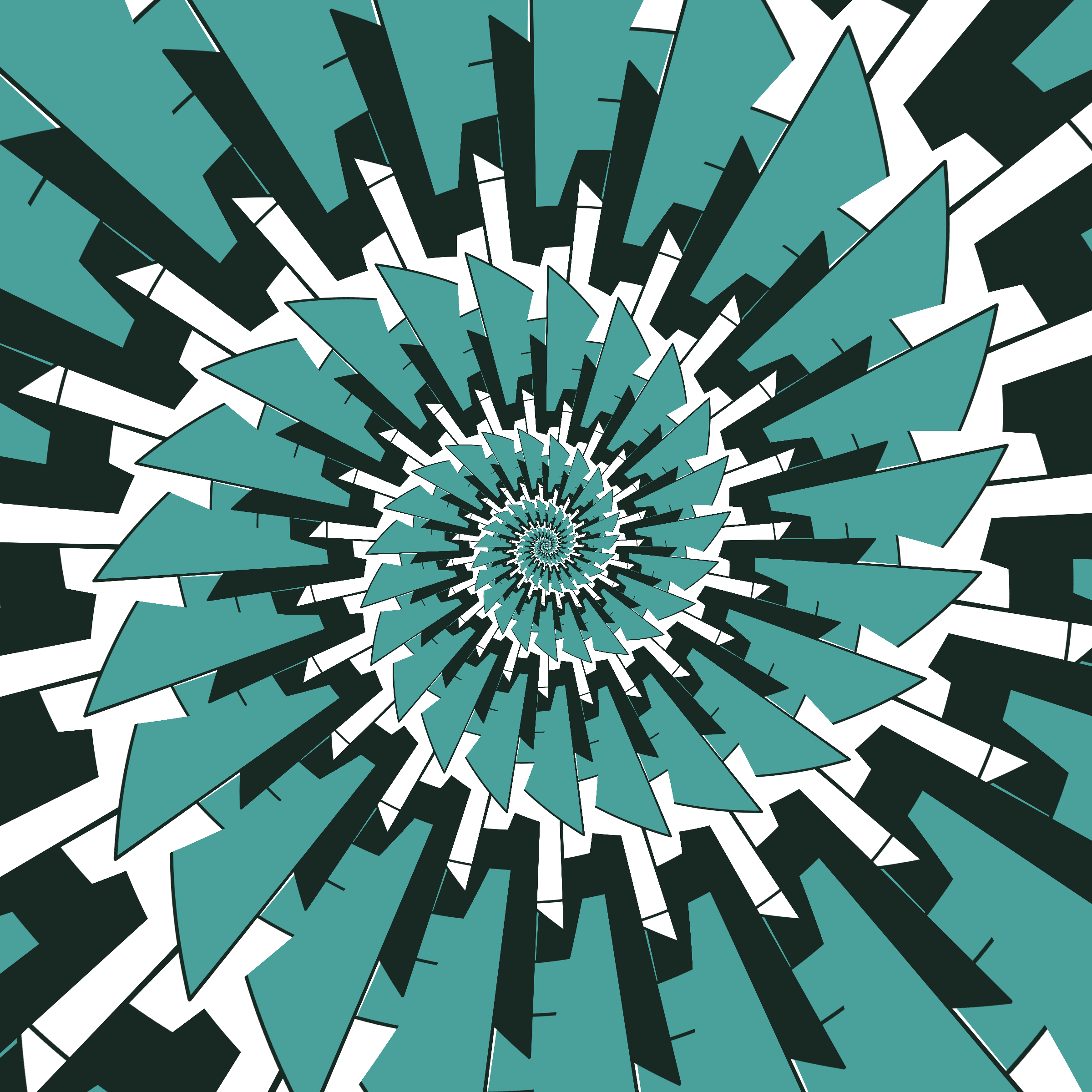 Escher-style tiling of a plane, gone wrong. Each image spins hash-driven colors, shapes, and symmetries into infinity. Fly through the spiral as it morphs between beauty and madness. Keys: F = Fly through/back, D = Distort on/off, Esc = Stop, S = Save image.