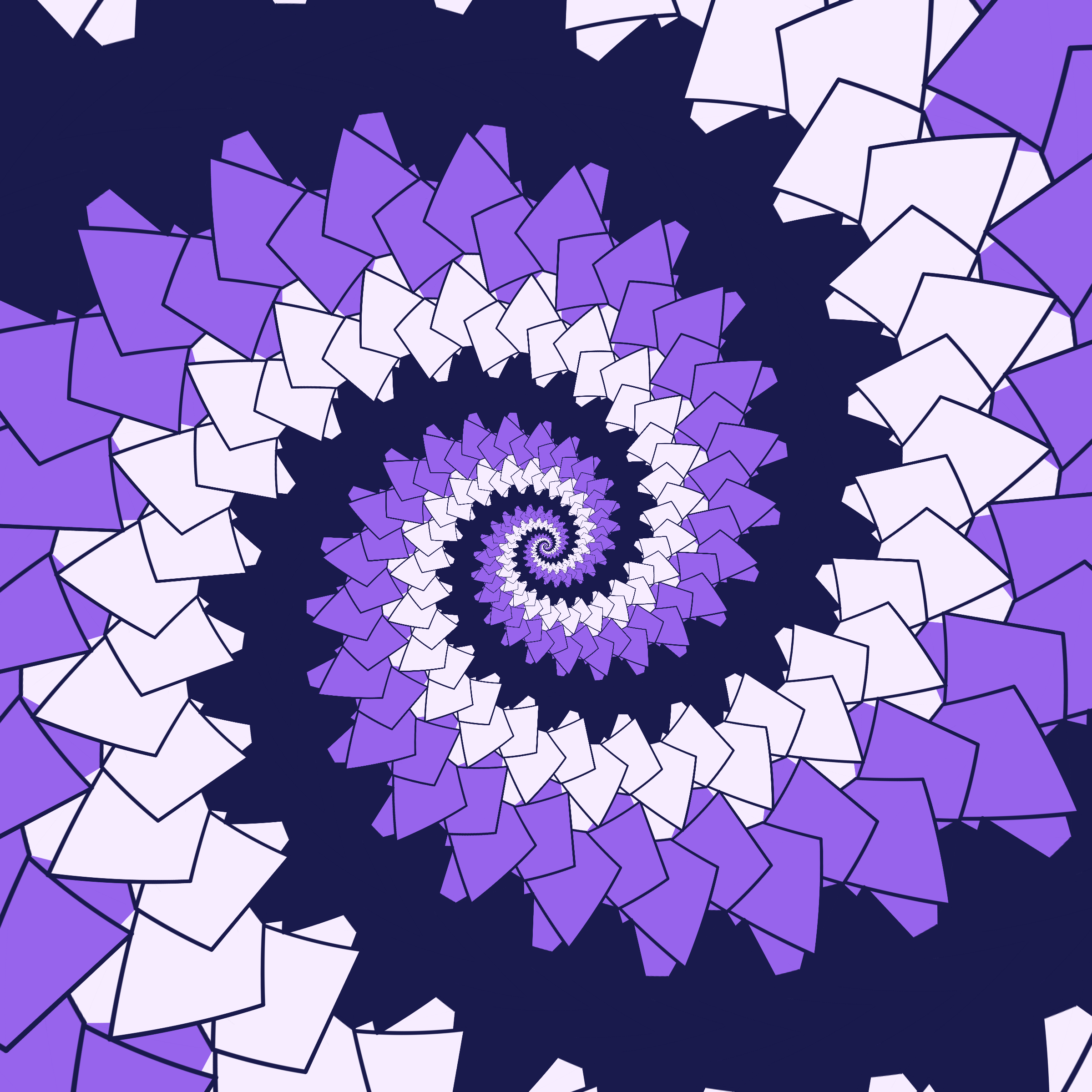 Escher-style tiling of a plane, gone wrong. Each image spins hash-driven colors, shapes, and symmetries into infinity. Fly through the spiral as it morphs between beauty and madness. Keys: F = Fly through/back, D = Distort on/off, Esc = Stop, S = Save image.