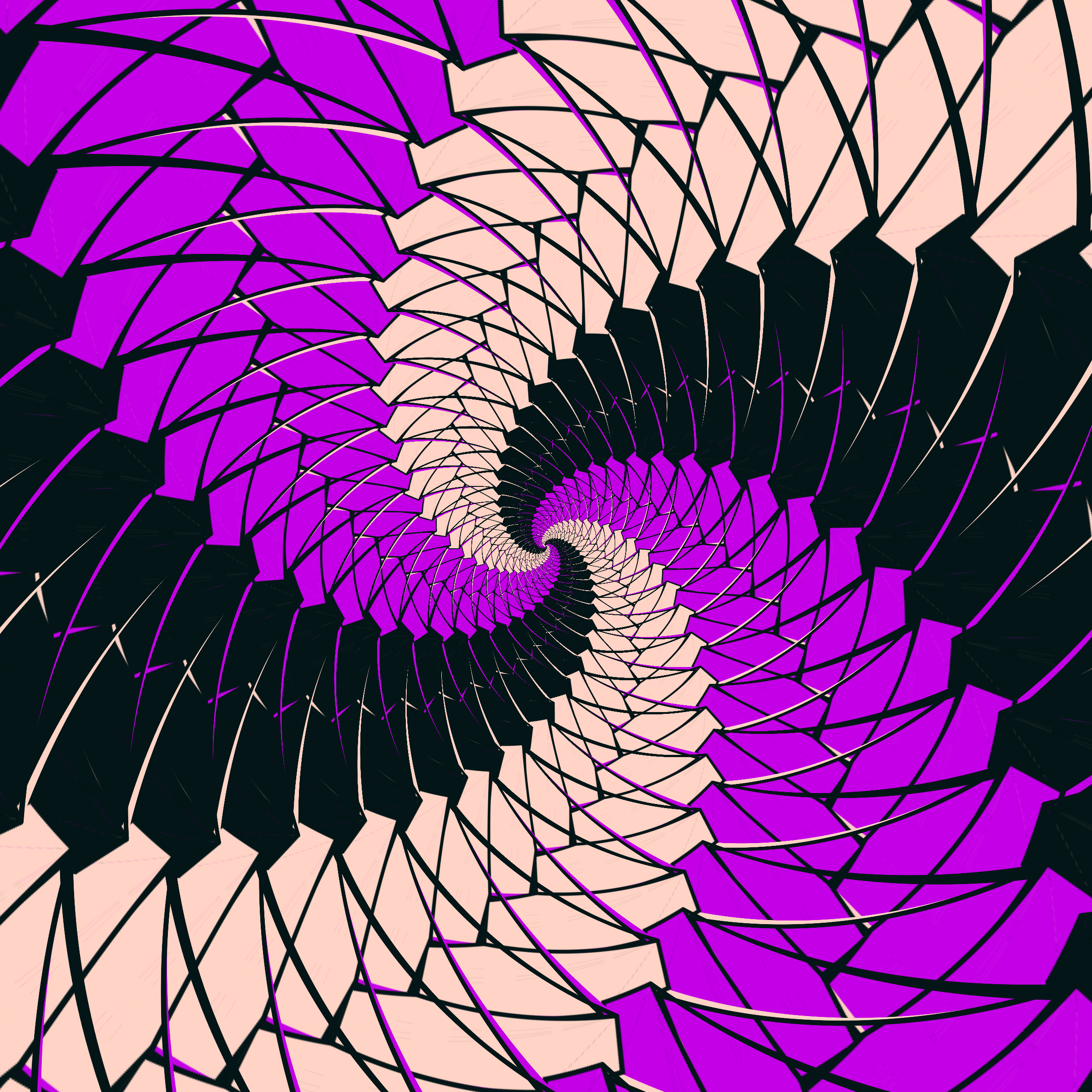 Escher-style tiling of a plane, gone wrong. Each image spins hash-driven colors, shapes, and symmetries into infinity. Fly through the spiral as it morphs between beauty and madness. Keys: F = Fly through/back, D = Distort on/off, Esc = Stop, S = Save image.