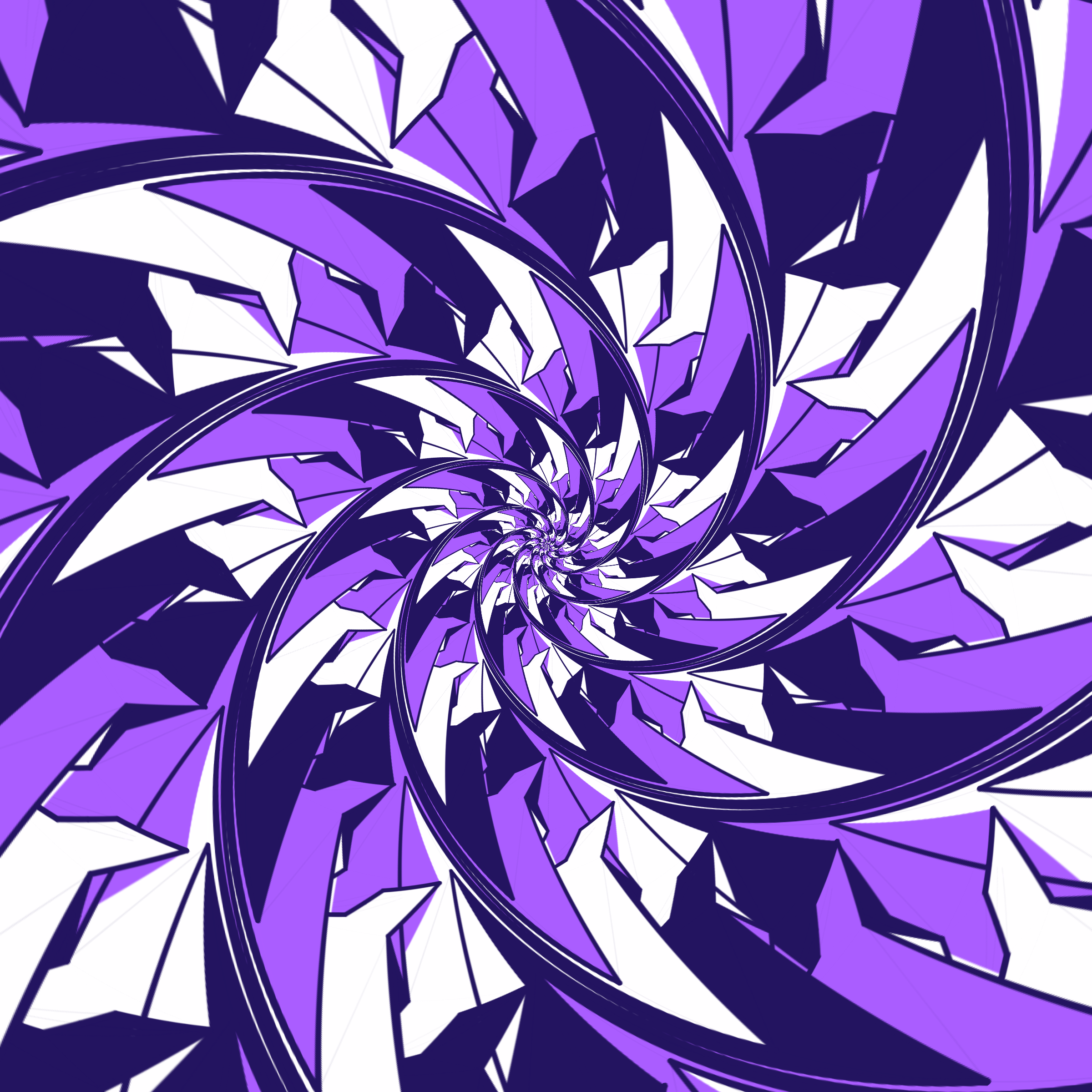 Escher-style tiling of a plane, gone wrong. Each image spins hash-driven colors, shapes, and symmetries into infinity. Fly through the spiral as it morphs between beauty and madness. Keys: F = Fly through/back, D = Distort on/off, Esc = Stop, S = Save image.