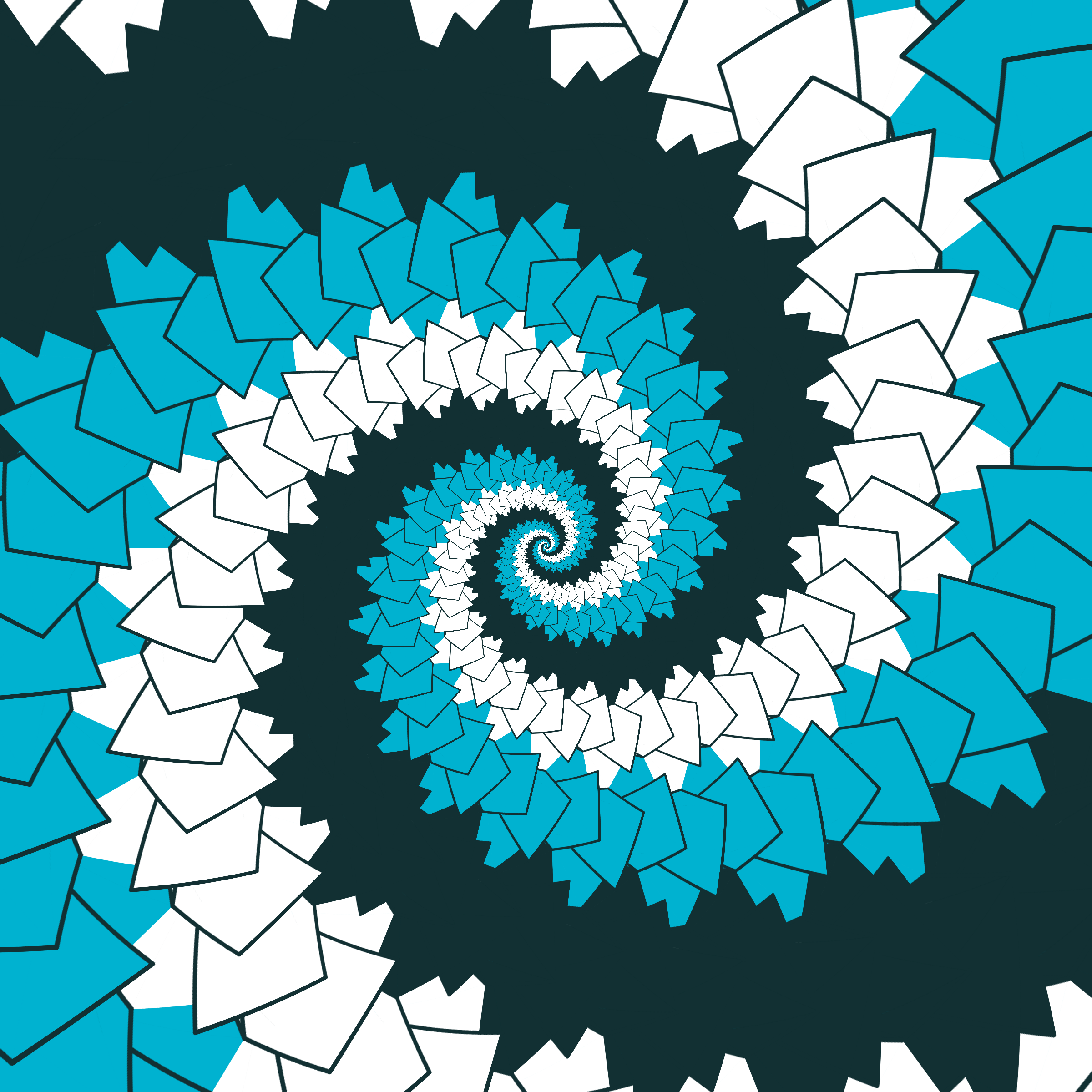 Escher-style tiling of a plane, gone wrong. Each image spins hash-driven colors, shapes, and symmetries into infinity. Fly through the spiral as it morphs between beauty and madness. Keys: F = Fly through/back, D = Distort on/off, Esc = Stop, S = Save image.