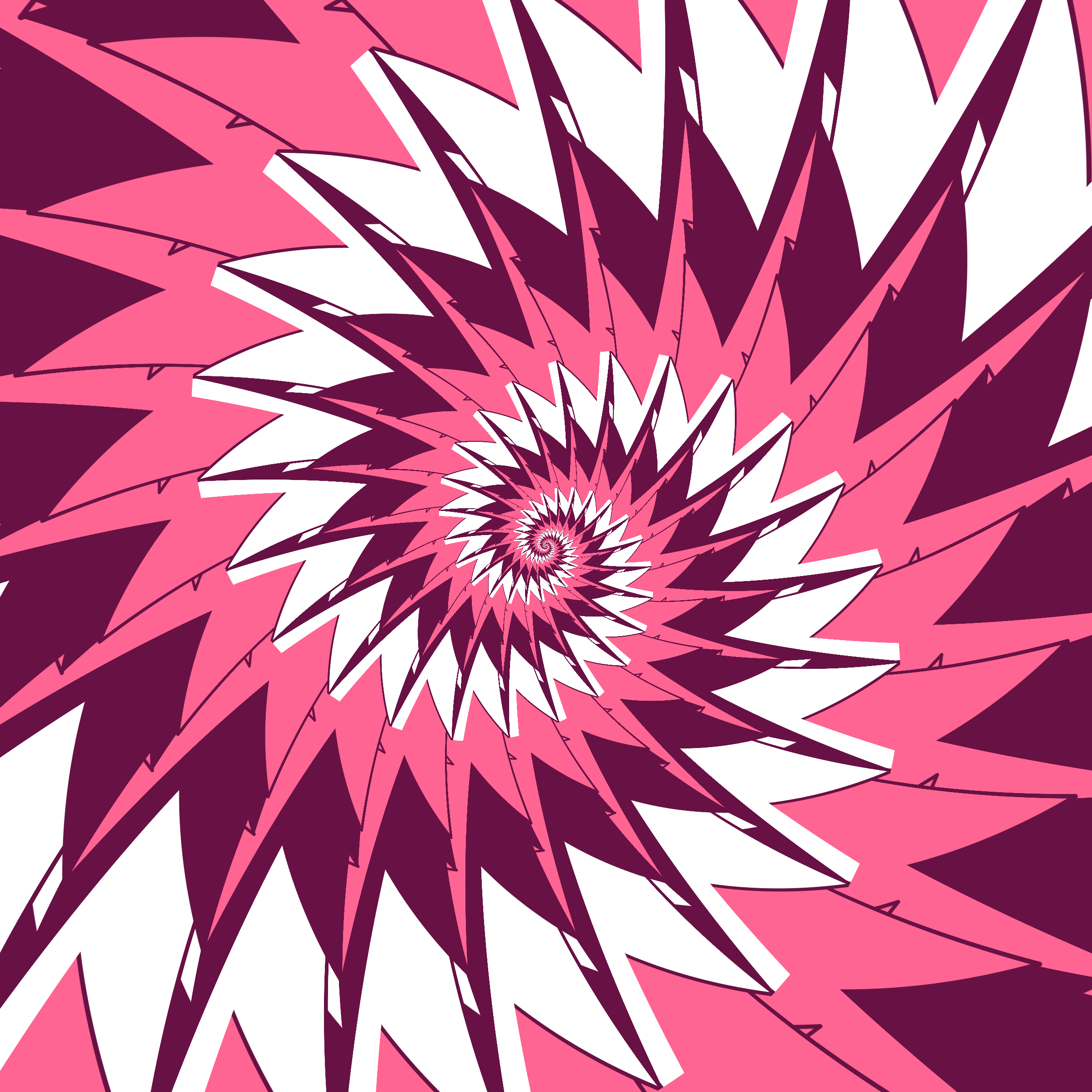 Escher-style tiling of a plane, gone wrong. Each image spins hash-driven colors, shapes, and symmetries into infinity. Fly through the spiral as it morphs between beauty and madness. Keys: F = Fly through/back, D = Distort on/off, Esc = Stop, S = Save image.