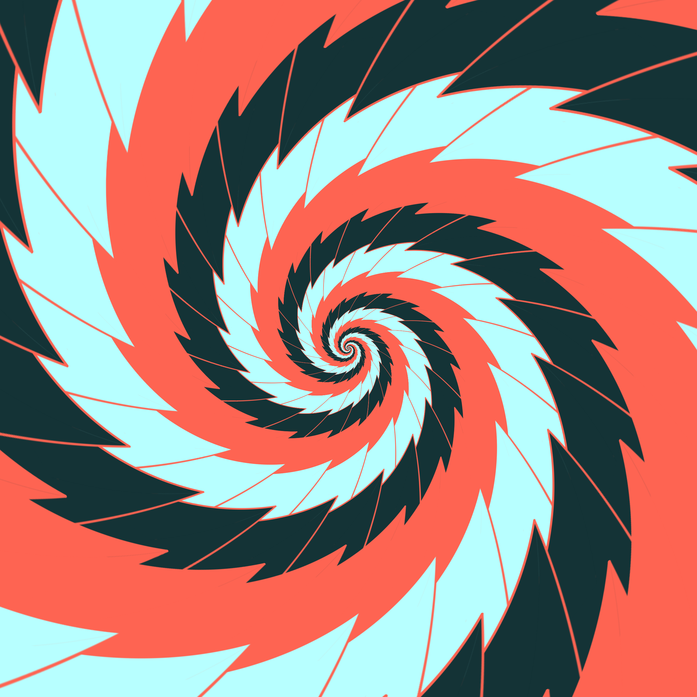Escher-style tiling of a plane, gone wrong. Each image spins hash-driven colors, shapes, and symmetries into infinity. Fly through the spiral as it morphs between beauty and madness. Keys: F = Fly through/back, D = Distort on/off, Esc = Stop, S = Save image.