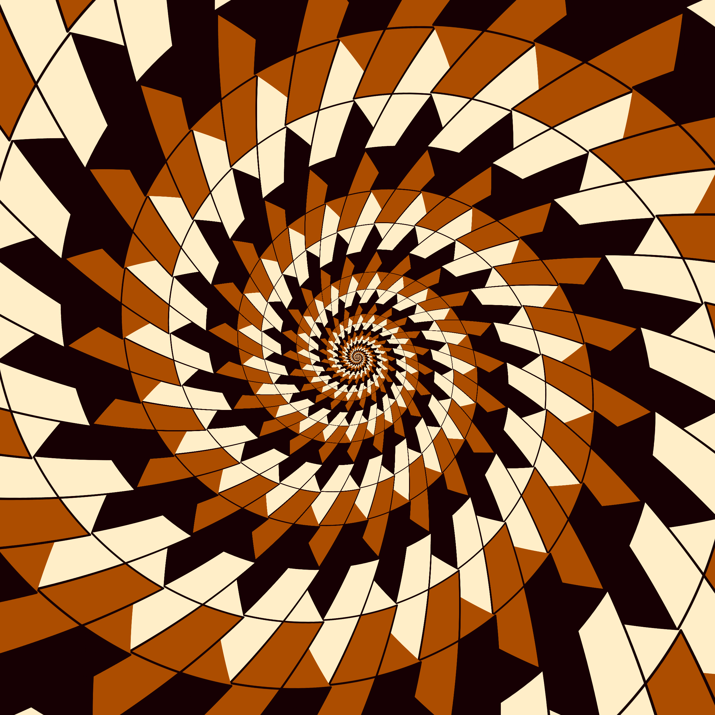 Escher-style tiling of a plane, gone wrong. Each image spins hash-driven colors, shapes, and symmetries into infinity. Fly through the spiral as it morphs between beauty and madness. Keys: F = Fly through/back, D = Distort on/off, Esc = Stop, S = Save image.