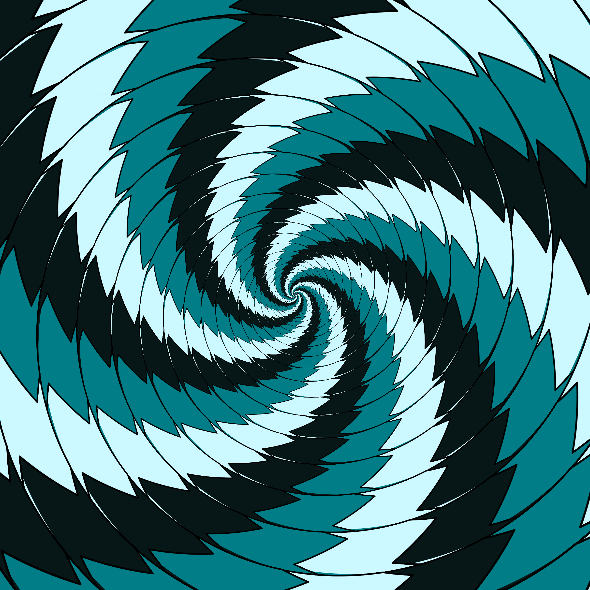 Escher-style tiling of a plane, gone wrong. Each image spins hash-driven colors, shapes, and symmetries into infinity. Fly through the spiral as it morphs between beauty and madness. Keys: F = Fly through/back, D = Distort on/off, Esc = Stop, S = Save image.