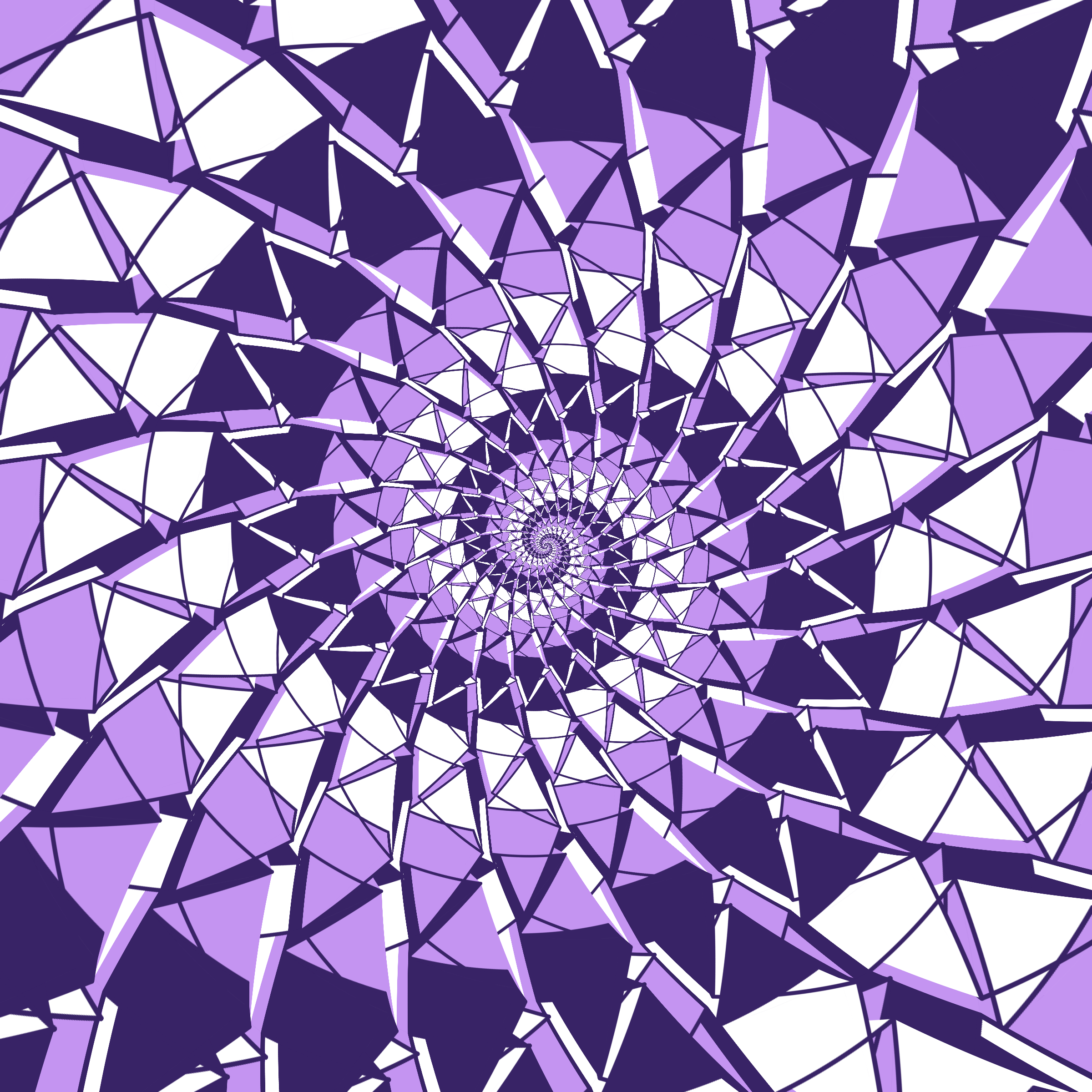 Escher-style tiling of a plane, gone wrong. Each image spins hash-driven colors, shapes, and symmetries into infinity. Fly through the spiral as it morphs between beauty and madness. Keys: F = Fly through/back, D = Distort on/off, Esc = Stop, S = Save image.