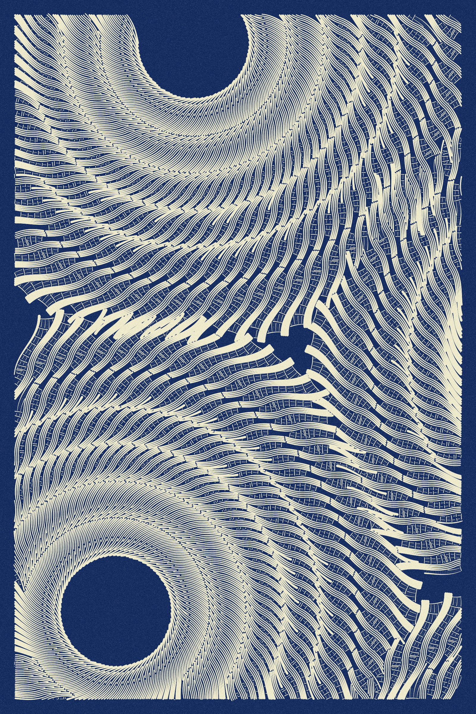 Intricada is created with autonomous agents drawing very small dots and following simple rules, positioned according to geometrical patterns. I’ve designed Intricada like a simulation, giving initial conditions and see what comes out of it. Each piece is the result of thousands of unpredictable consequences.