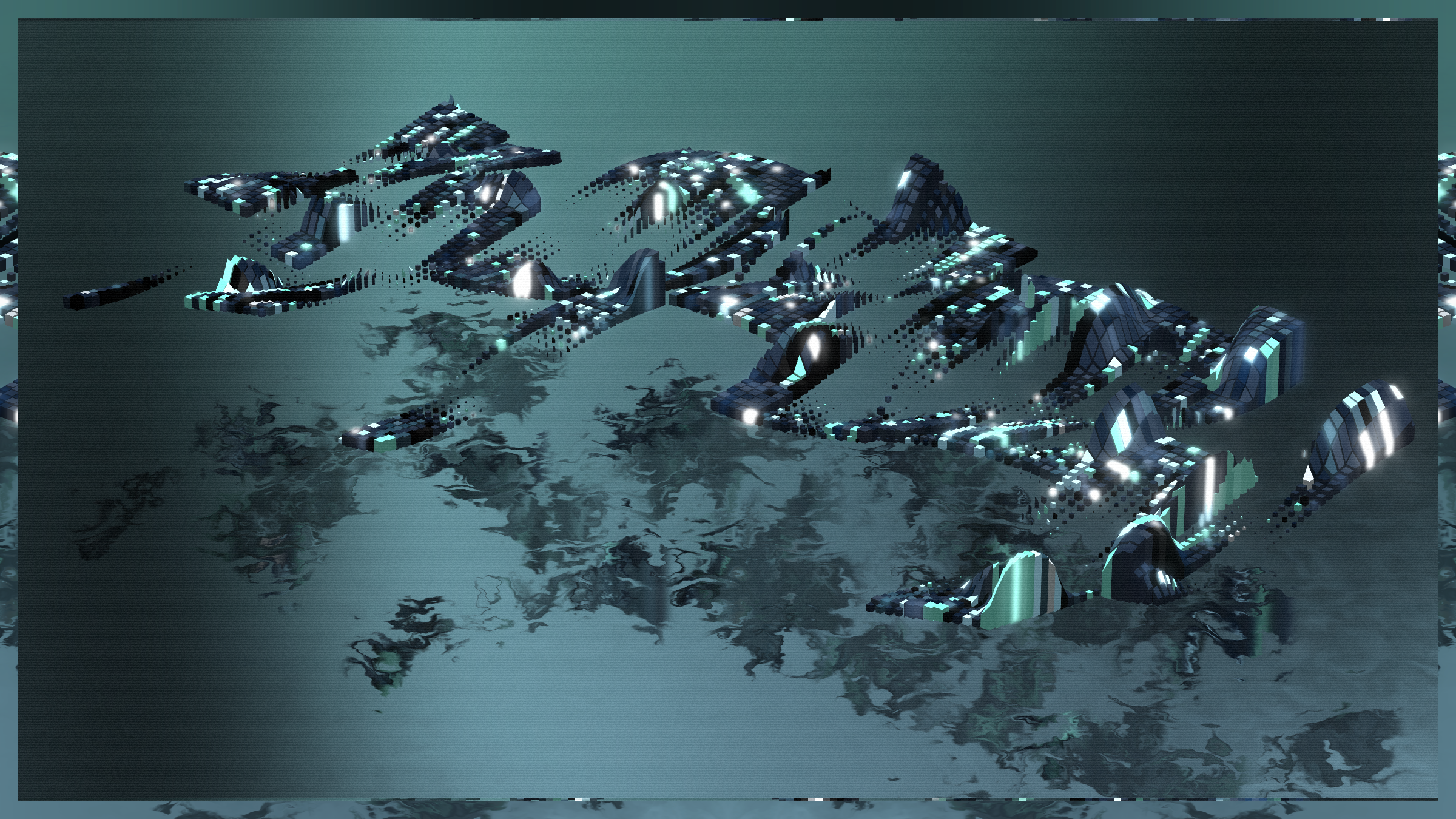Random and anarchy, chaos and structurality. Jiometory No Compute is a living motion experimental study, a contemplative geometry organism that lives now and forever. Each individual units movement contributes and flows into a generative path for a greater purpose. Together they try to achieve a symbiosis, although an « ideal » computer program is very relative. Exploring domains of definitions and warping an input data-set leads to unexpected behaviors, sometimes surprising, often fascinating. Interactions : Zoom-in / Zoom-out / Drag left and right / Best view in full-screen.