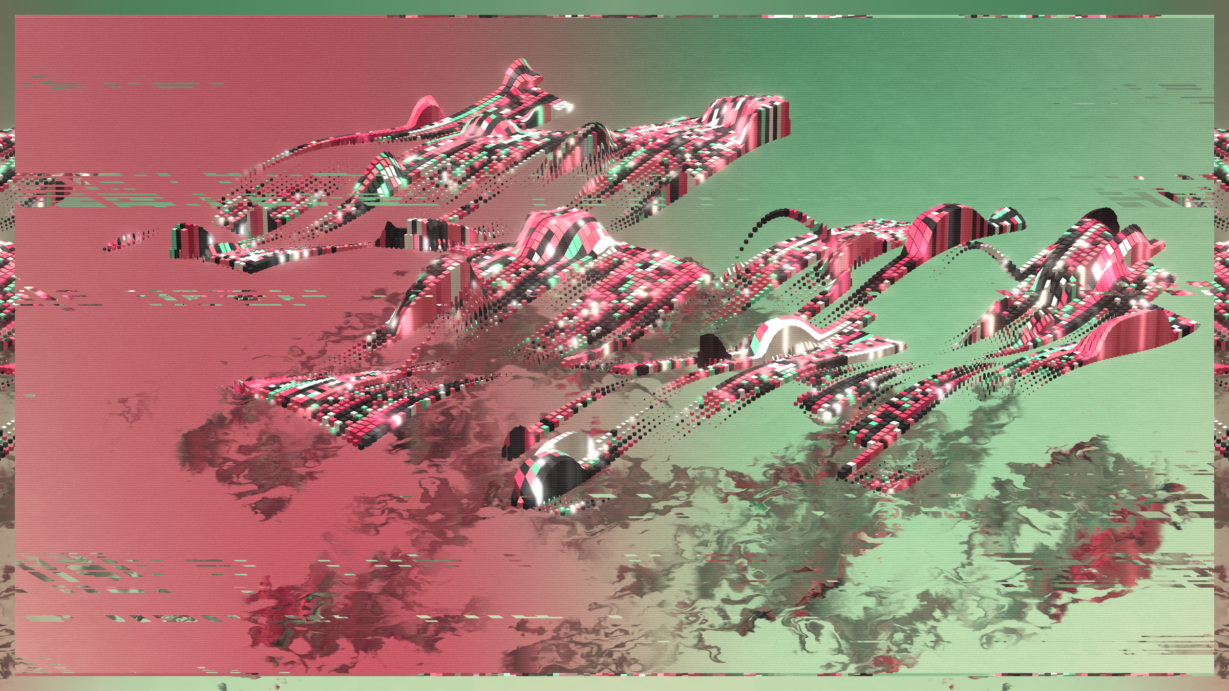 Random and anarchy, chaos and structurality. Jiometory No Compute is a living motion experimental study, a contemplative geometry organism that lives now and forever. Each individual units movement contributes and flows into a generative path for a greater purpose. Together they try to achieve a symbiosis, although an « ideal » computer program is very relative. Exploring domains of definitions and warping an input data-set leads to unexpected behaviors, sometimes surprising, often fascinating. Interactions : Zoom-in / Zoom-out / Drag left and right / Best view in full-screen.