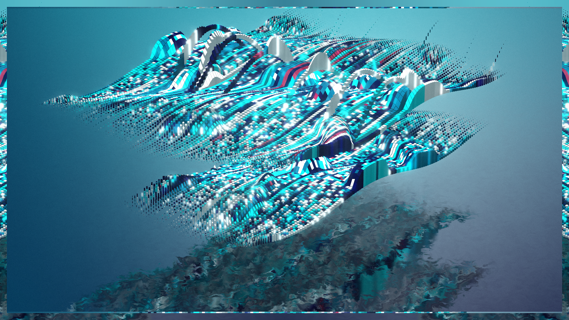 Random and anarchy, chaos and structurality. Jiometory No Compute is a living motion experimental study, a contemplative geometry organism that lives now and forever. Each individual units movement contributes and flows into a generative path for a greater purpose. Together they try to achieve a symbiosis, although an « ideal » computer program is very relative. Exploring domains of definitions and warping an input data-set leads to unexpected behaviors, sometimes surprising, often fascinating. Interactions : Zoom-in / Zoom-out / Drag left and right / Best view in full-screen.