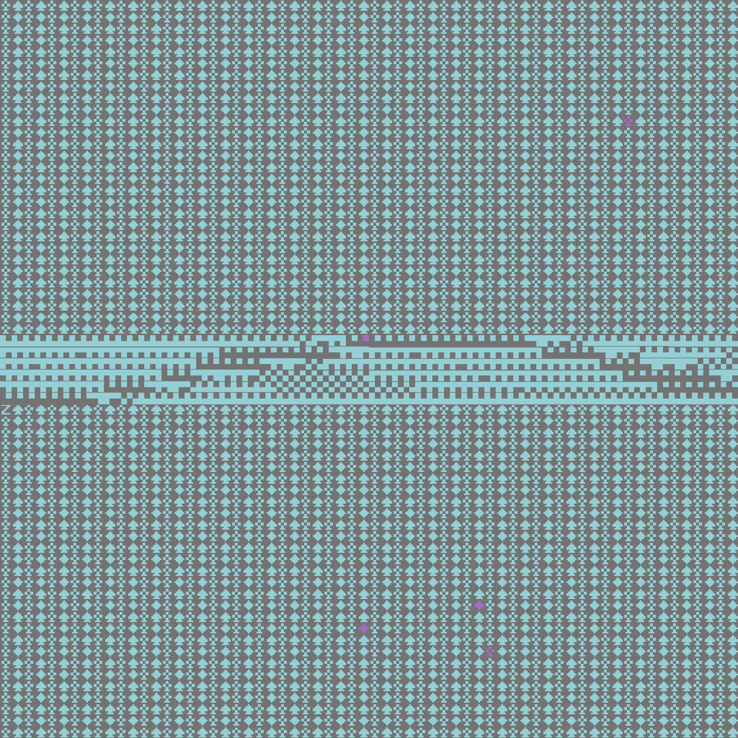 **KERNELS** is the mechanical interplay of several Finite-State Machines that form together an elaborate visual system. At the core of the system lives the Kernel (or a version of it), inviting you to stick around and forget about everything, while it is doing all of the computational work for you. The underlying grid of the visual system is both the output and the raw data on which a Finite-State Machine is doing calculations on a per cell basis. The Kernel is telling you, that generating outputs is as easy as 1 + 1.