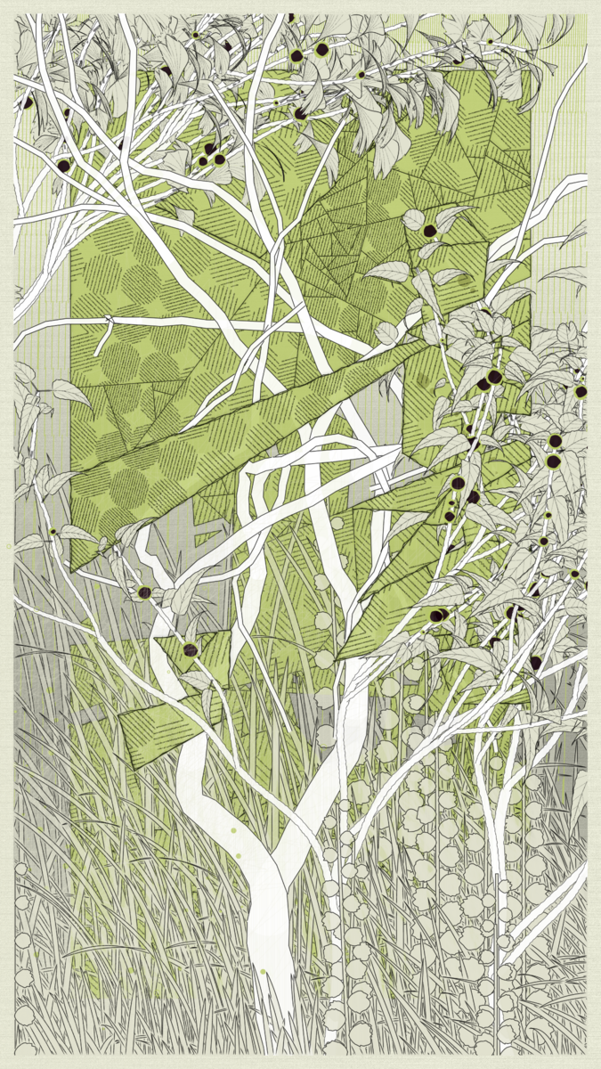 How can one create a work inspired by a city where one has never set foot? Moreover, a place on the other side of the world, whose history and cultural richness are of such dizzying density? I quickly realized that my work could only be imagined, dreamed, imbued with my Western culture, tinged with my distant prejudices. I worked with a visual approach above all, around a few chosen colors, representative tree species, and some clichéd symbols: for example, the composition is organized around 3 abstract shapes, including the circle, directly inspired by the rising sun on the flag, the rectangular shape of a kakemono, or a cityscape.
