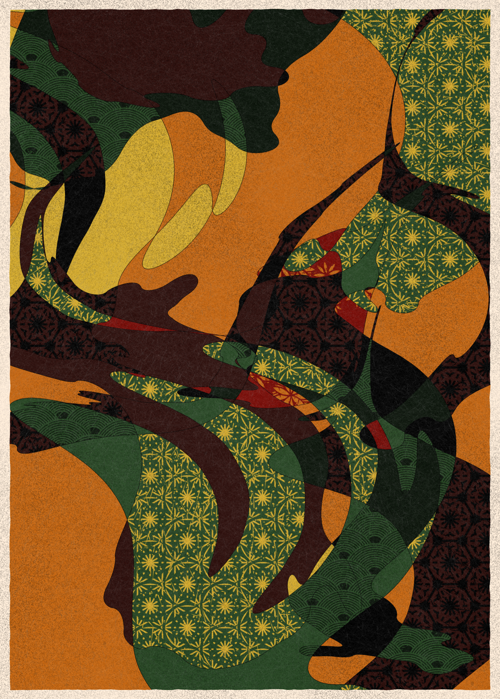Memories of Qilin is inspired by traditional East Asian art. It channels the sense of movement and fluidity found in classical Chinese brushwork, while drawing from the colors, patterns, and forms of ukiyo-e woodblock prints.