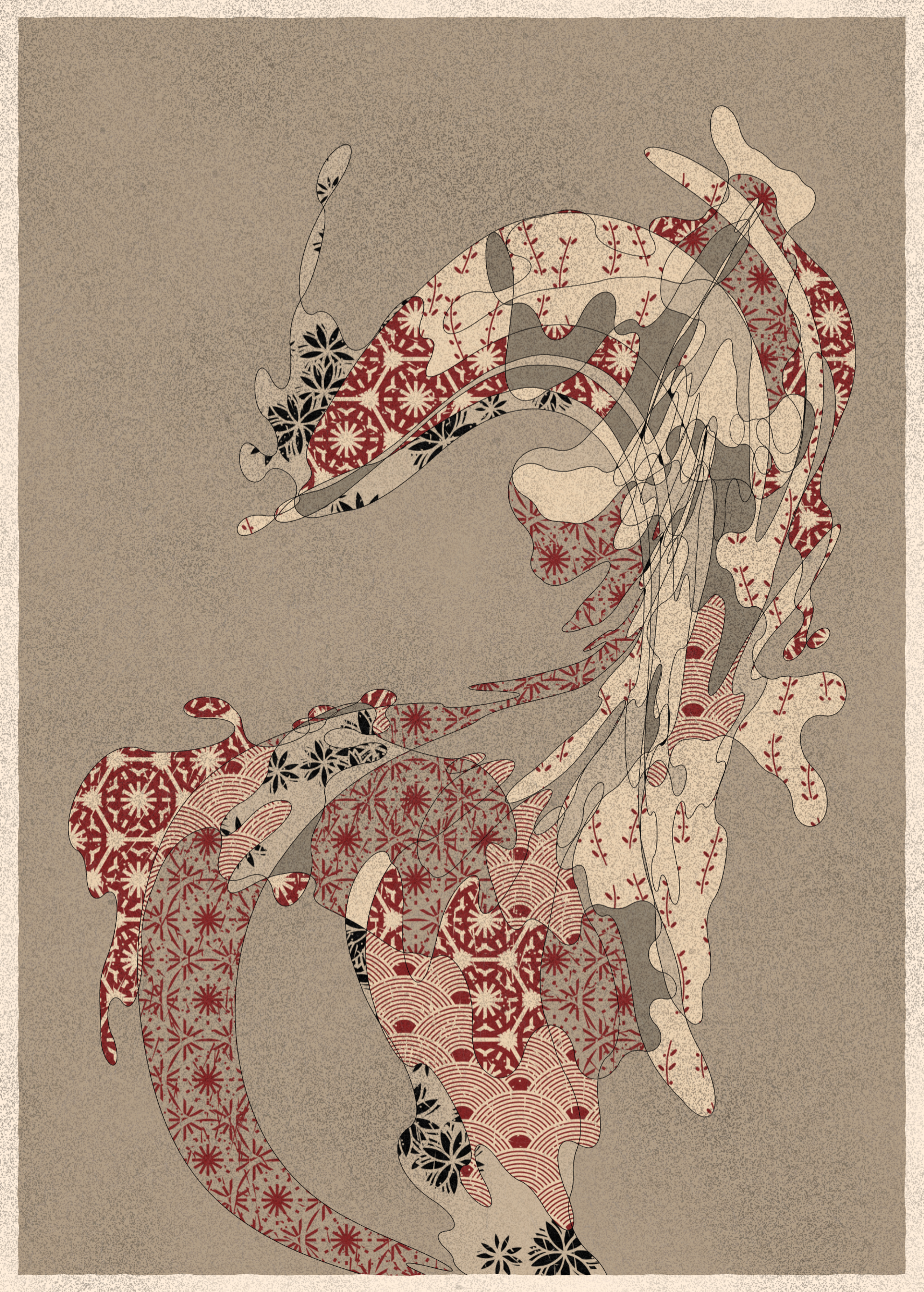 Memories of Qilin is inspired by traditional East Asian art. It channels the sense of movement and fluidity found in classical Chinese brushwork, while drawing from the colors, patterns, and forms of ukiyo-e woodblock prints.