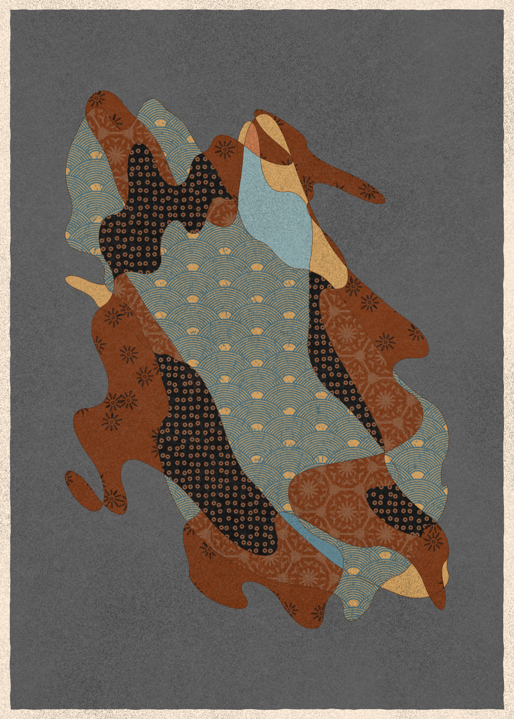 Memories of Qilin is inspired by traditional East Asian art. It channels the sense of movement and fluidity found in classical Chinese brushwork, while drawing from the colors, patterns, and forms of ukiyo-e woodblock prints.