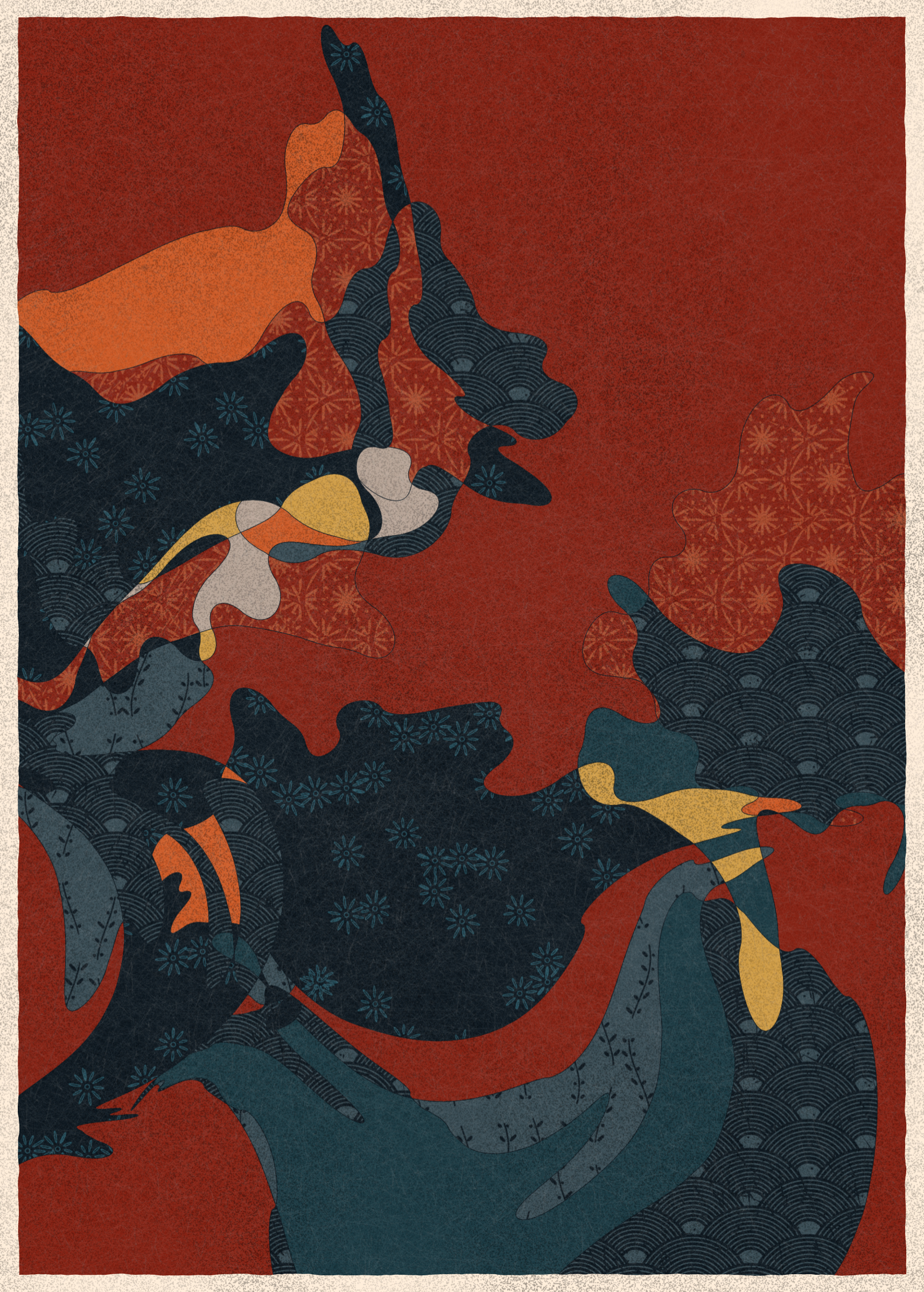 Memories of Qilin is inspired by traditional East Asian art. It channels the sense of movement and fluidity found in classical Chinese brushwork, while drawing from the colors, patterns, and forms of ukiyo-e woodblock prints.