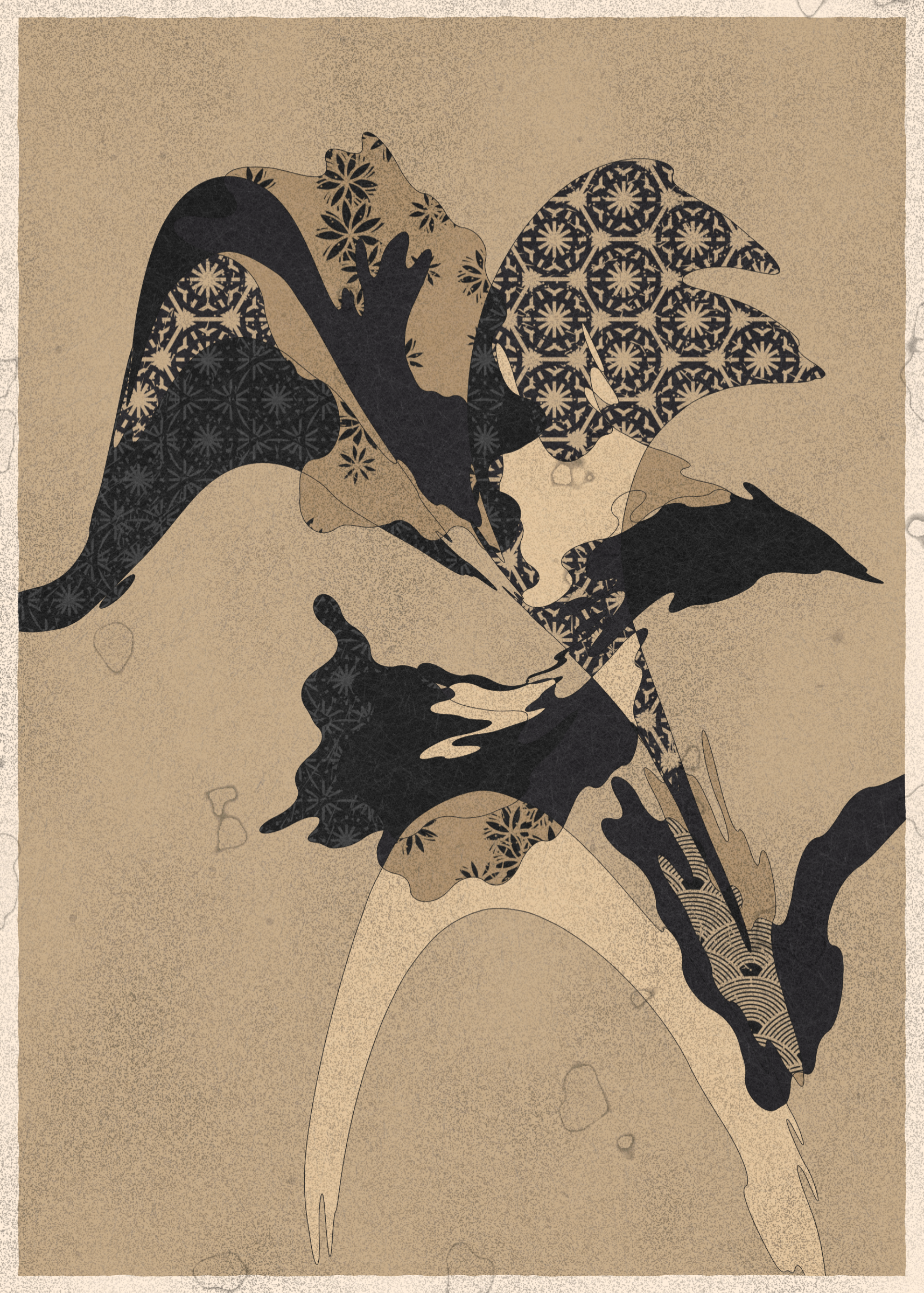Memories of Qilin is inspired by traditional East Asian art. It channels the sense of movement and fluidity found in classical Chinese brushwork, while drawing from the colors, patterns, and forms of ukiyo-e woodblock prints.