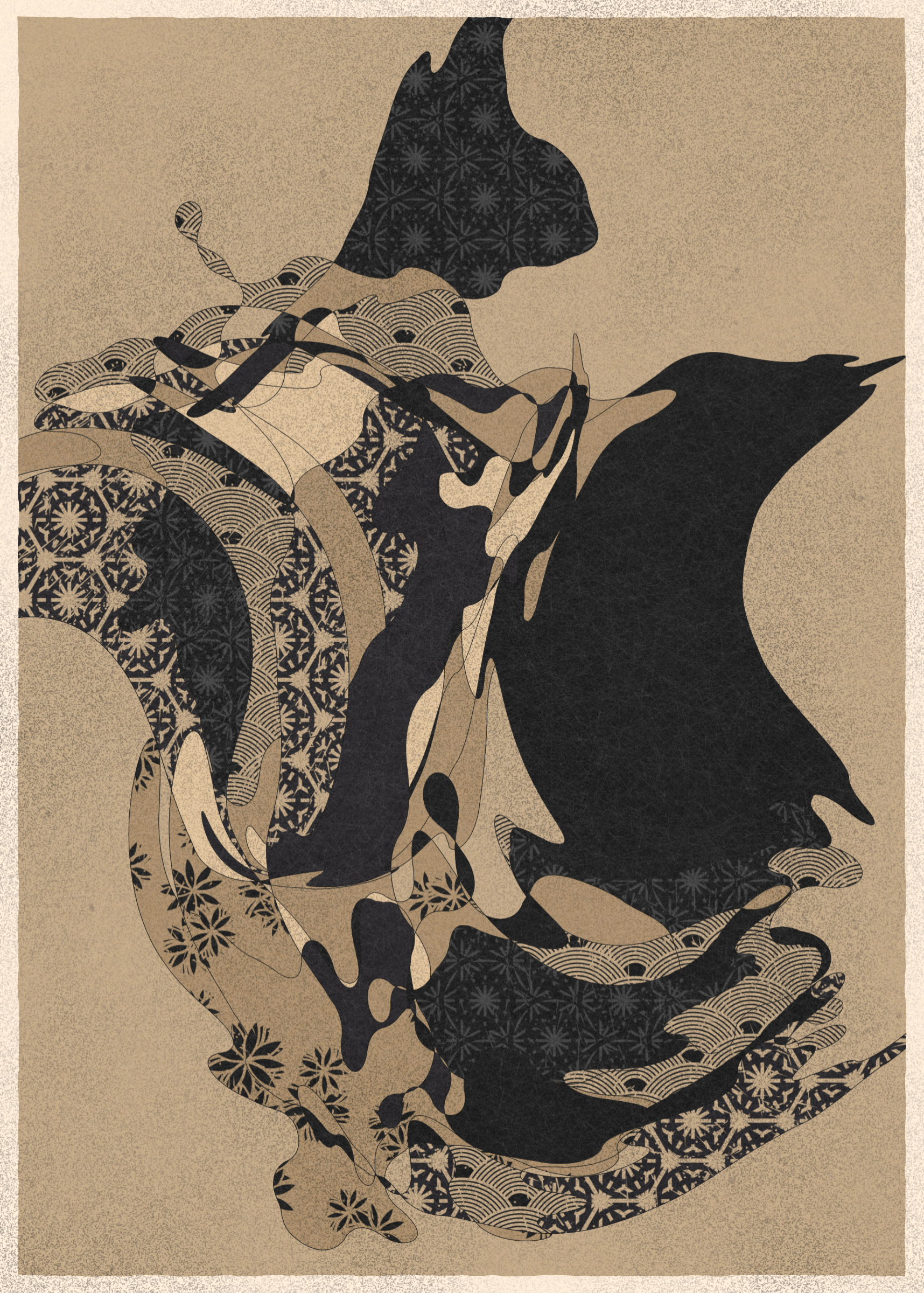 Memories of Qilin is inspired by traditional East Asian art. It channels the sense of movement and fluidity found in classical Chinese brushwork, while drawing from the colors, patterns, and forms of ukiyo-e woodblock prints.