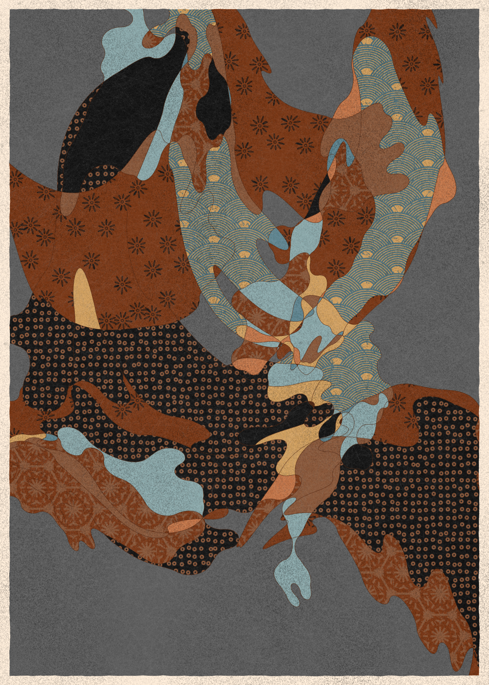 Memories of Qilin is inspired by traditional East Asian art. It channels the sense of movement and fluidity found in classical Chinese brushwork, while drawing from the colors, patterns, and forms of ukiyo-e woodblock prints.