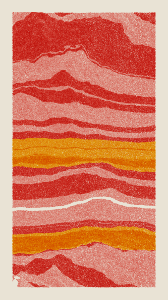 Stratified landforms constructed from many small strokes of colour. The hash of each token describes a coordinate within a multidimensional generative space, locating a unique composition that lies along one of many possible longitudes.