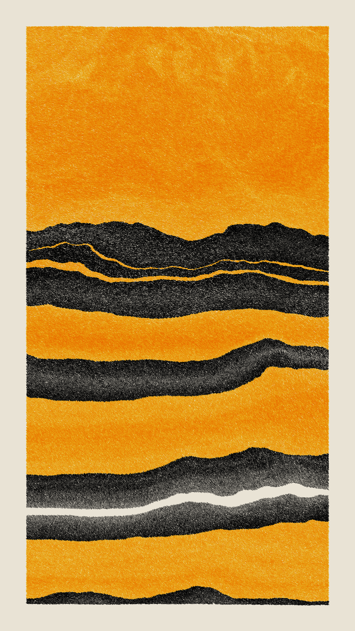 Stratified landforms constructed from many small strokes of colour. The hash of each token describes a coordinate within a multidimensional generative space, locating a unique composition that lies along one of many possible longitudes.