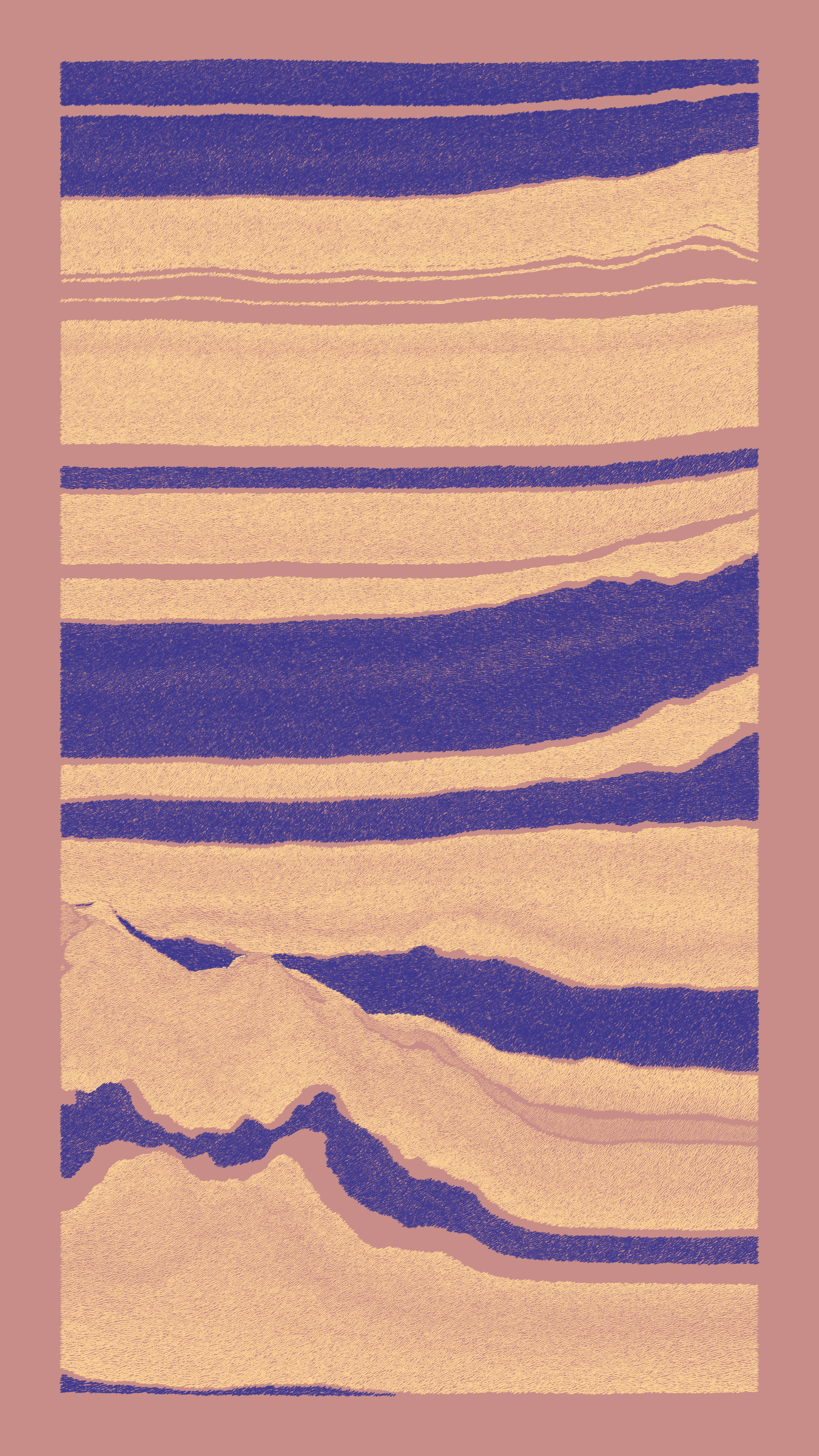 Stratified landforms constructed from many small strokes of colour. The hash of each token describes a coordinate within a multidimensional generative space, locating a unique composition that lies along one of many possible longitudes.